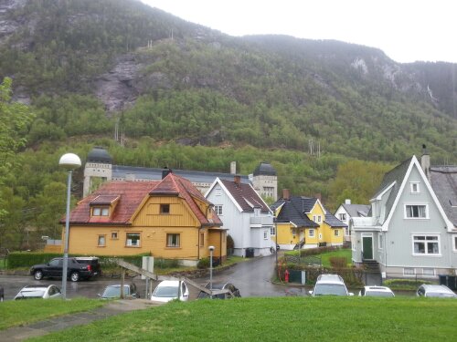 Zu diesen riesigen Bauten gesellen sich auch noch die grossen Gebäude der hiesigen Stromproduktion „Norsk Hydro“ welche hauptsächlich Strom aus dem gestauten Møsvatn See gewinnt.