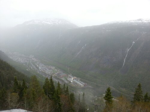 Kleine Anektodte am Rand: Die Luftseilbahn Krossobahnen wurde von Norsk Hydro den Einwohnern von Rjukan gebaut und geschenkt. Dies, damit die „armen“ Leute im Winter mal ans Licht und die Sonne kommen.In Rjukan zeigt sich die Sonne über 6 Monate im Jahr nicht!!