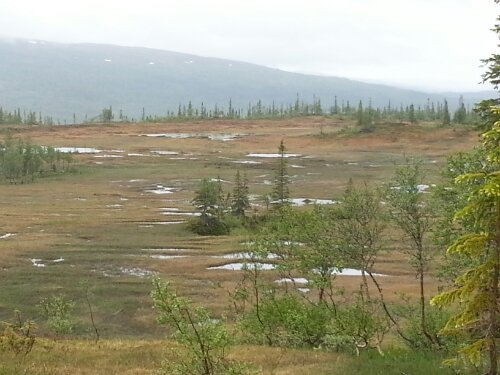 Nun, mein Ruhetag in der Fersliahütte war mehr als angenehm. Endlich mal bei Regen, Nebel und Kälte am geheizten Schwedenofen bei einer Tasse heisser Schokolade zum Fenster rausschauen, statt draussen im Matsch rumzustapfen….man könnte sich daran gewöhnen. Mein Glück dass es in der Hütte einen Ordner mit sämtlichen Telefonnummern von DNT- sowie den Privathüttenbesitzern gab. So konnte ich bequem alle auf meiner geplanten Route anrufen und nach den Bedingungen auf den Wegen fragen. Mitte Juni sind diese Leute meist daran Wege und Hütten für den Sommer bereitzustellen. Dass ich von 6 deren 5 Zuhause erreiche war schon ein schlechtes Omen. Jawohl, die Leute sind zuhause, weil die Verhältnisse miserabel sind da draussen. Alle sind sich einig dass es vorerst einmal 1-2 Wochen abtrocknen muss, damit es mal einigermassen akzeptabel wird. Keiner empfiehlt mir vorerst nördlicher als Snåsa ins Moor zu gehen, zu mühsam. Ich solle vielleicht zuerst mal probieren wie es bis Snåsa geht, wenn überhaupts. Super, denk ich, das tönt überhaupt nicht gut. Klar, die Strecke laufen kann man immer irgendwie, aber es soll doch auch Spass machen. Der nächste Tag bricht an und ich mache mich auf den Weg zur Bellingstue Hütte, gute 32 Km. von hier und davon etwa 25 im Fjell.