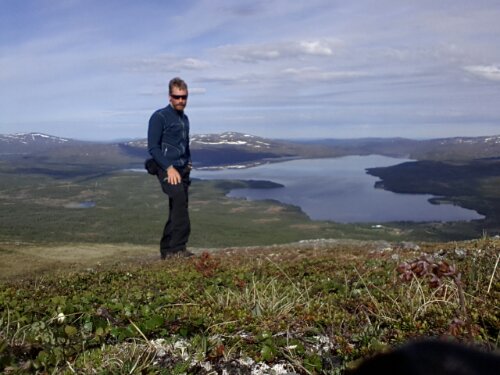 Als ich auf den Hausberg der Fersliahütte gestiegen bin, ohne Schönebirkenwaldstrasse, ohne Kilometer gegen Norden, mit etwas Matsch aber ohne 25Kg. am Rücken. Traumhaft schön, mit Blick tief hinunter in das Fjell wo ich gestern so kläglich im Matsch gescheitert bin, wo jetzt das Wasser in der Sonne glitzert. Nein,es ist mir nicht im Traum in den Sinn gekommen, es heute bei besserem Wetter nochmal zu versuchen. Heute war ein Tag an dem ich weit über den Kilometerrand geschaut habe. Und ich bin mir nun ganz sicher, ich werde in den nächsten Wochen so oft als möglich über diesen Rand schauen, soweit es meine Gesundheit auch zulässt. Vielleicht habe ich jetzt nicht ein Norge på langs, durch die Tatsache nicht ganz durchzulaufen, verloren, sondern ich habe ein anderes gefunden.