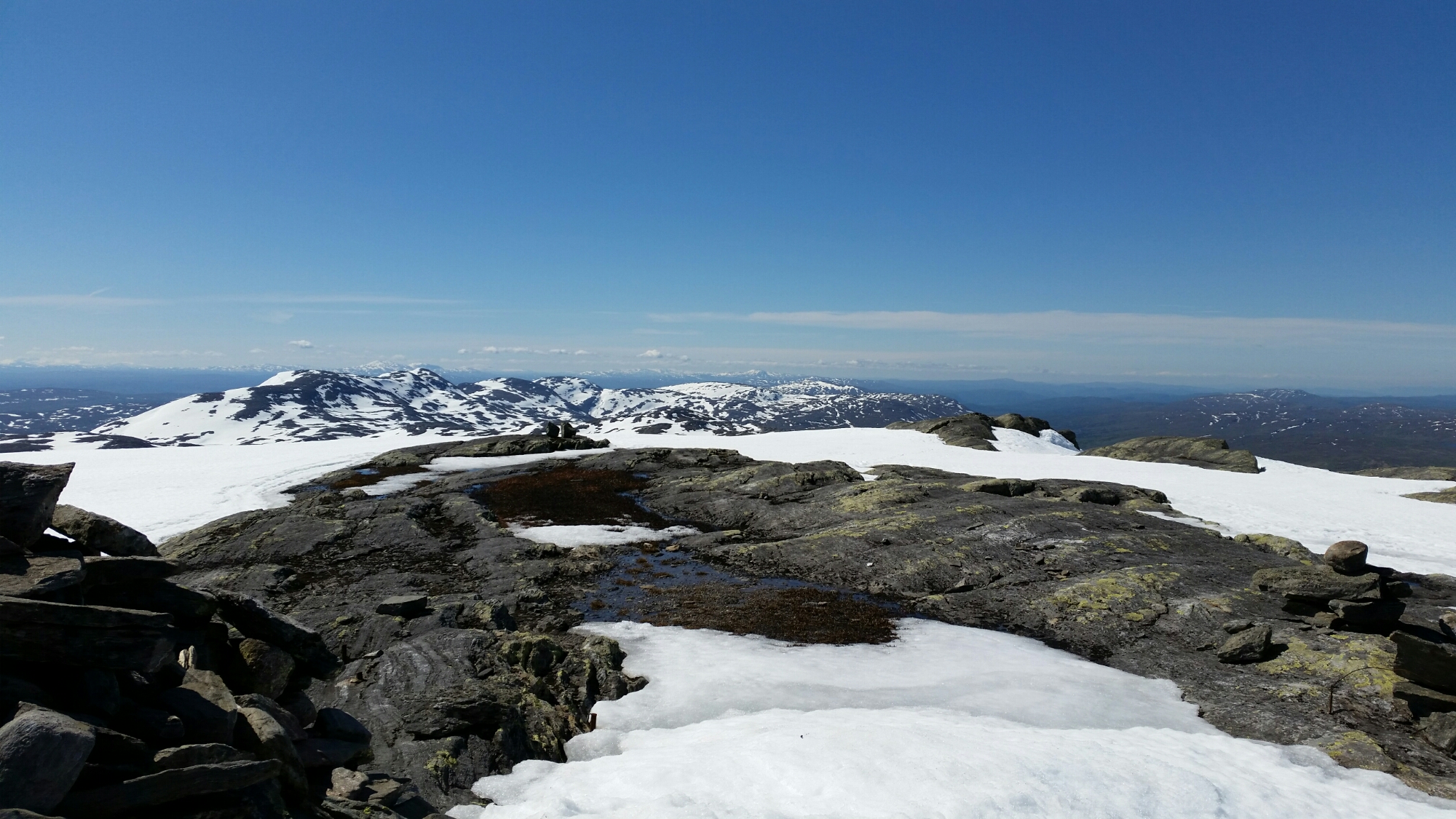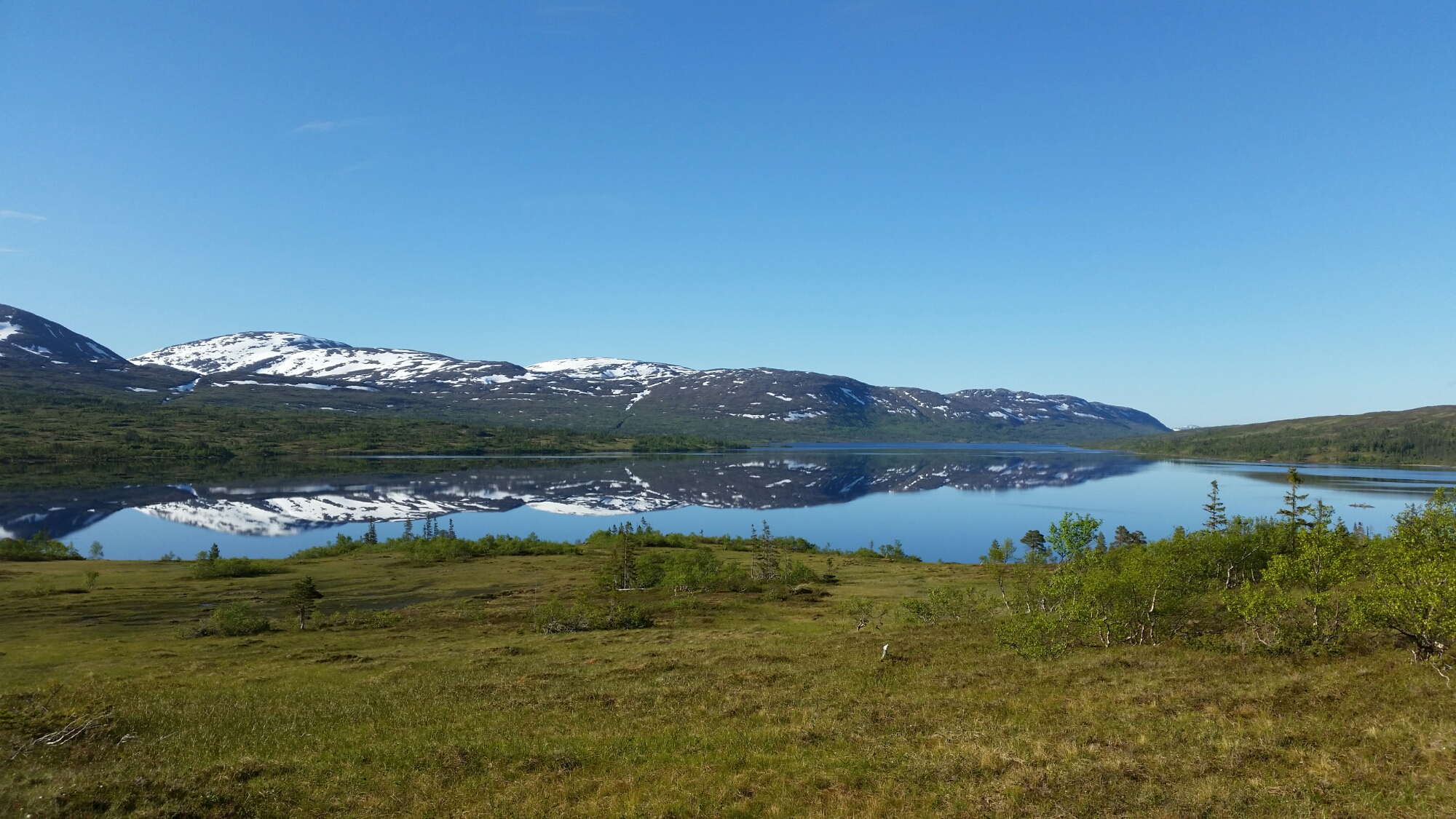 Nach sehr viel Sumpf und Matsch,endlich in den Bergen.Bei herrlichen Bedingungen auf dem Skjækerfjellhatten mit Weitblick ins überall.Heute sehr lange Wegstrecke bis 30 Kilometer und alles weglos.Aber eben….Topwetter 🙂