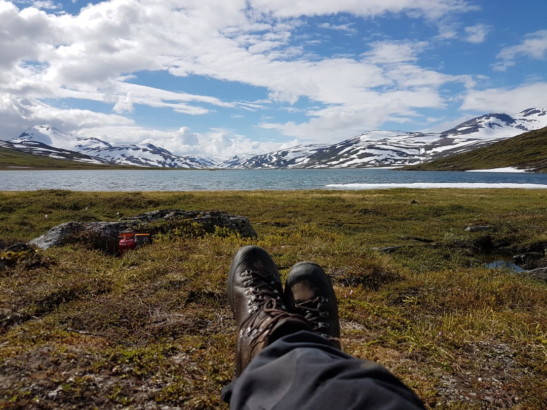 Entlang des riesigen Virihaure Sees war das laufen, trotz der annähernd 30 Kilo am Rücken. ein Traum. Auffallend….es hat wenig Leute vor Ort!