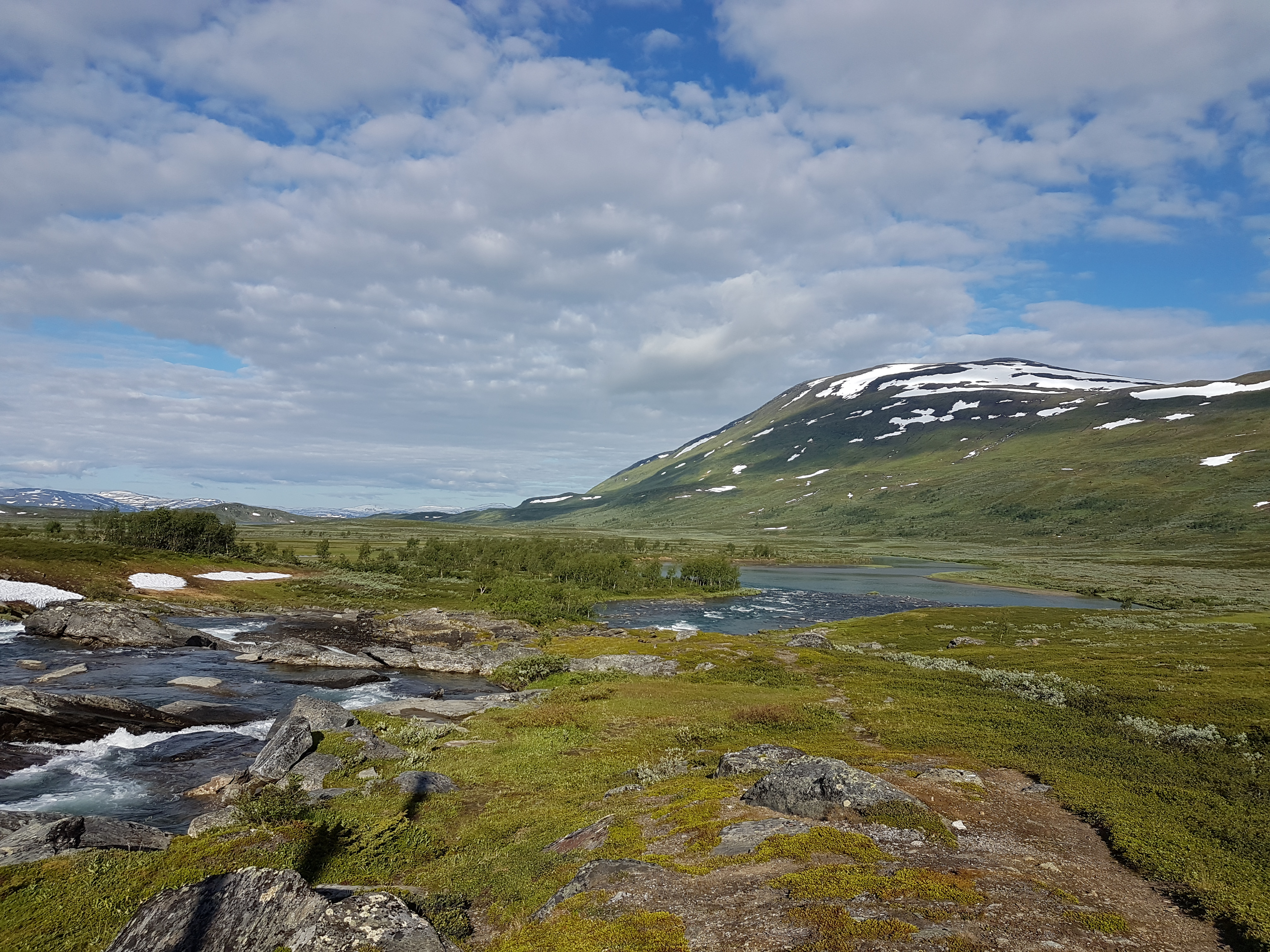 Nach einer Nacht in der wunderschönen Stáddájåhkå Ebene folgte der Nordkalottleden nun über Staloluokta nach Árasluokta. Dies alles bei perfekten Wanderbedingungen und trockenen Wegen.Die Mückenplage wurde durch eine gute Brise Wind in Schach gehalten.