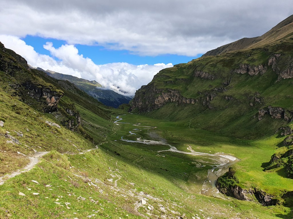 Ein paar Regentropfen deuten langsam auf die Wetterveränderung an und so gebe ich nun etwas mehr Gas, um noch trocken ins Sertig Dörfli zu gelangen. Das Ducantal ist unglaublich beeindruckend und wird von dem sehr lieblichen und grünen Sertigtal abgelöst.