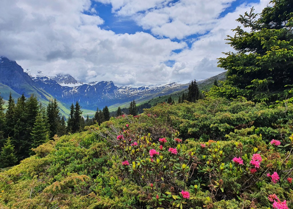 Wann ist es am besten? Man sollte sich bewusst sein, dass der Walserweg zum Teil Alpin, bis Hochalpin geführt ist. Das heisst, er führt mehrheitlich immer im Bereich von 2000 Höhenmeter durch das Land und hat mehrere Pässe zwischen 2500 – 2900 MüM. Schnee kann also fast das ganze Jahr ein Thema sein und man sollte sich auch „Kleidungstechnisch“ auf kalte Tage einrichten. Der Herbst wird sicher einer der schönsten Momente sein, wenn all die Nadelwälder, vor allem Föhren und Lärchen in ihrem Gelb erstrahlen und die Gipfel zum Teil schon eine weisse Kappen haben. Die Blütenpracht im Frühsommer ist allerdings ebenfalls eine Wucht…das kann ich jetzt bestätigen!
