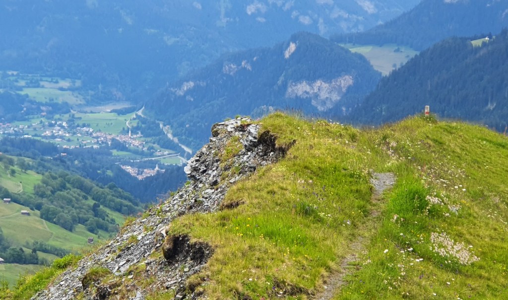 Sonntag: Für den zweiten Tag, liegt die kürzeste Etappe bereit und sie macht mir auch kein „Kopfweh“. Der Anstieg auf den Glaspass und dann geht es locker runter nach Thusis. 17 Kilometer und 2200 Höhenmeter sind machbar und werden mich am einzigen Tag mit etwas Nebel, Wolken und ab und zu einen Tropfen Regen, beschäftigen.