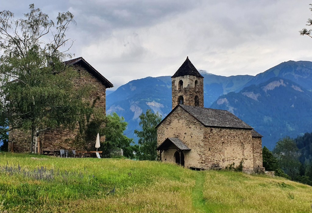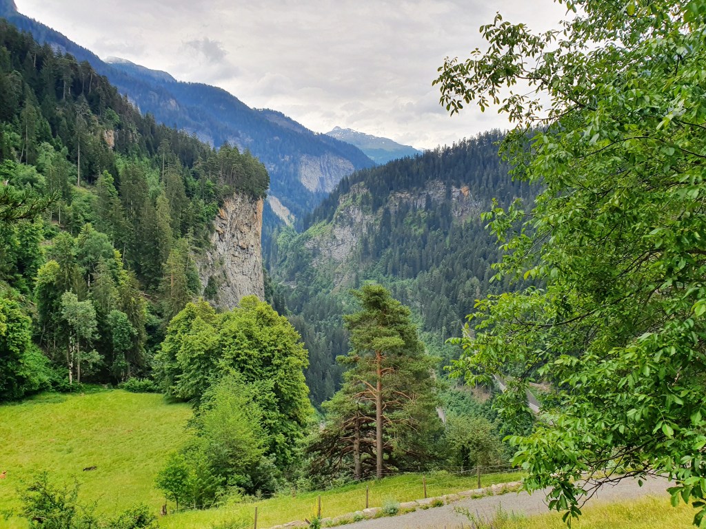 Allerdings sehe ich auch gleich meinen nächsten, morgendlichen Anstieg im Hintergrund, rauf zum Glaspass 1843 MüM. Das heisst, heute mal zuerst 700 Meter runter und morgen gleich wieder 600 Meter hinauf. Die typische Topographie des Walserweges!