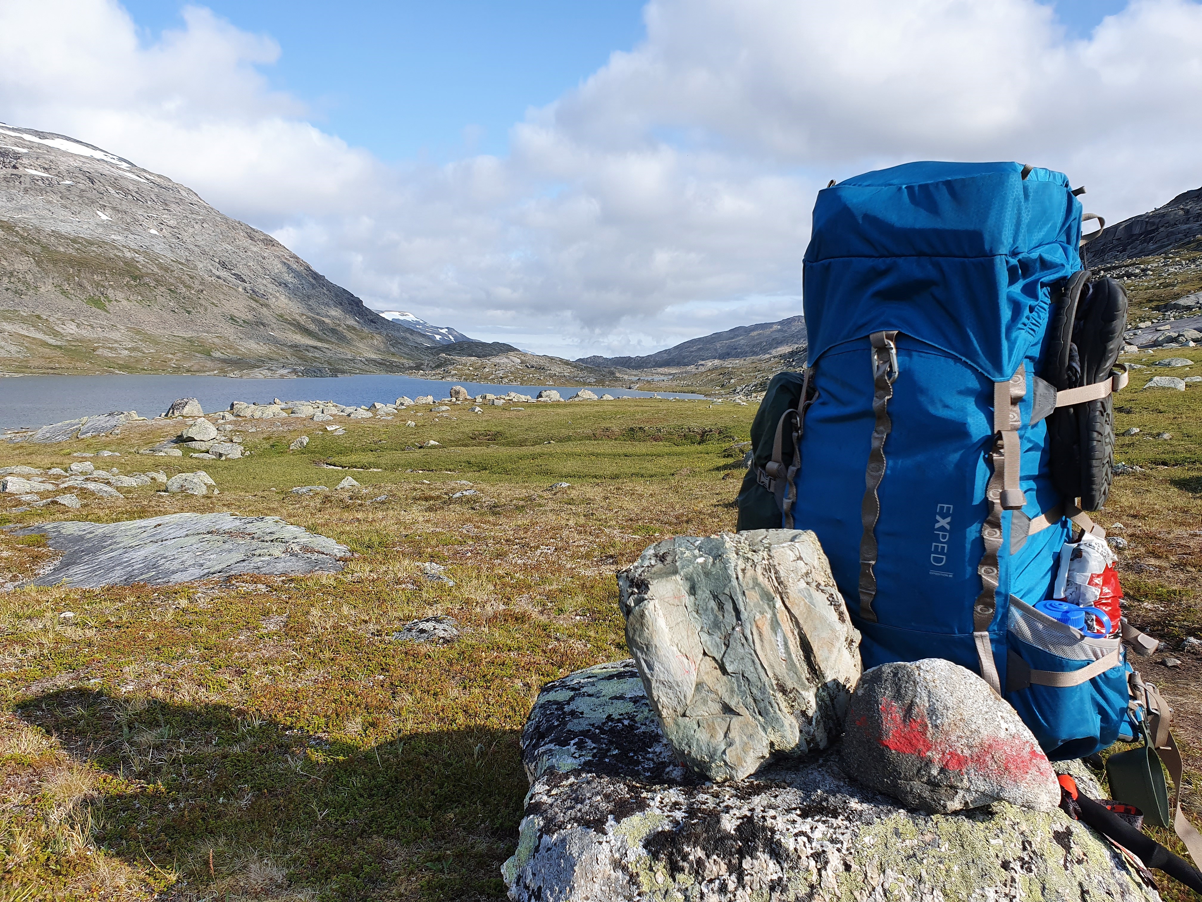 Nun, ich habe einen gut trainierten Rücken, mir macht das Gewicht nichts aus und ich mag einen gewissen Komfort auf der Tour (scheint wohl langsam am Alter zu liegen). Aber ja, auch ich, wie andere auch, laufen nicht tagelang mit einem so schweren Rucksack durch das Fjell. Der Rucksack ist exakt einen Tag so schwer und verliert danach tagtäglich an Gewicht. Daher plane ich die ersten zwei Tage eher etwas kürzere Etappen, dass so oder so vernünftig ist, um einen guten Einstieg in die Tour zu haben.
