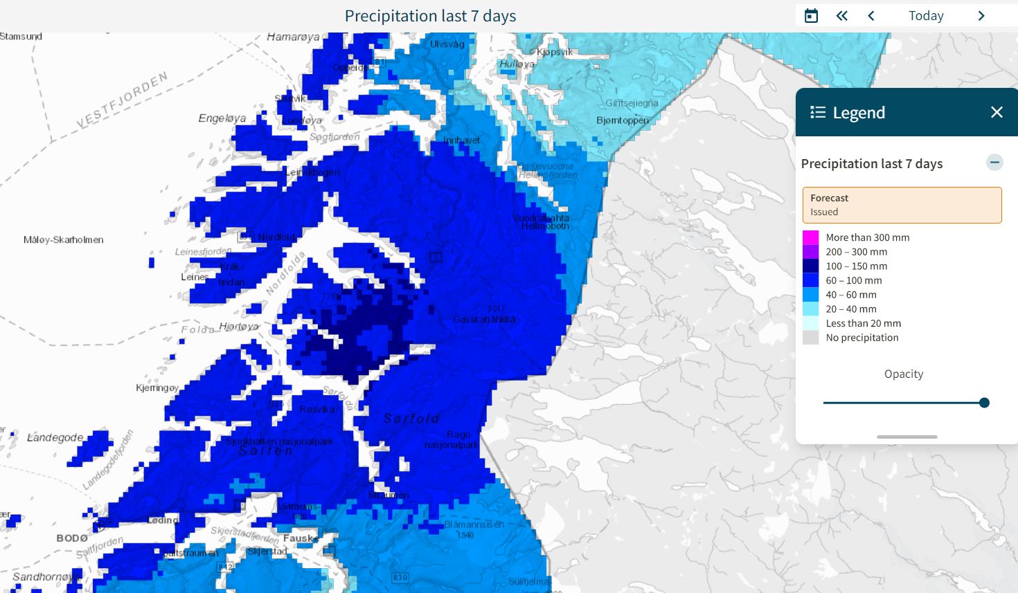 Die Gemeinde Tysfjord rund um Hellmobotn und die angrenzenden Gebiete, haben in den letzten 2, 3 Wochen öfters Hochwasser gemeldet und die Niederschlagsmengen über die letzten 7 Tage sind die zweithöchsten in ganz Norwegen.