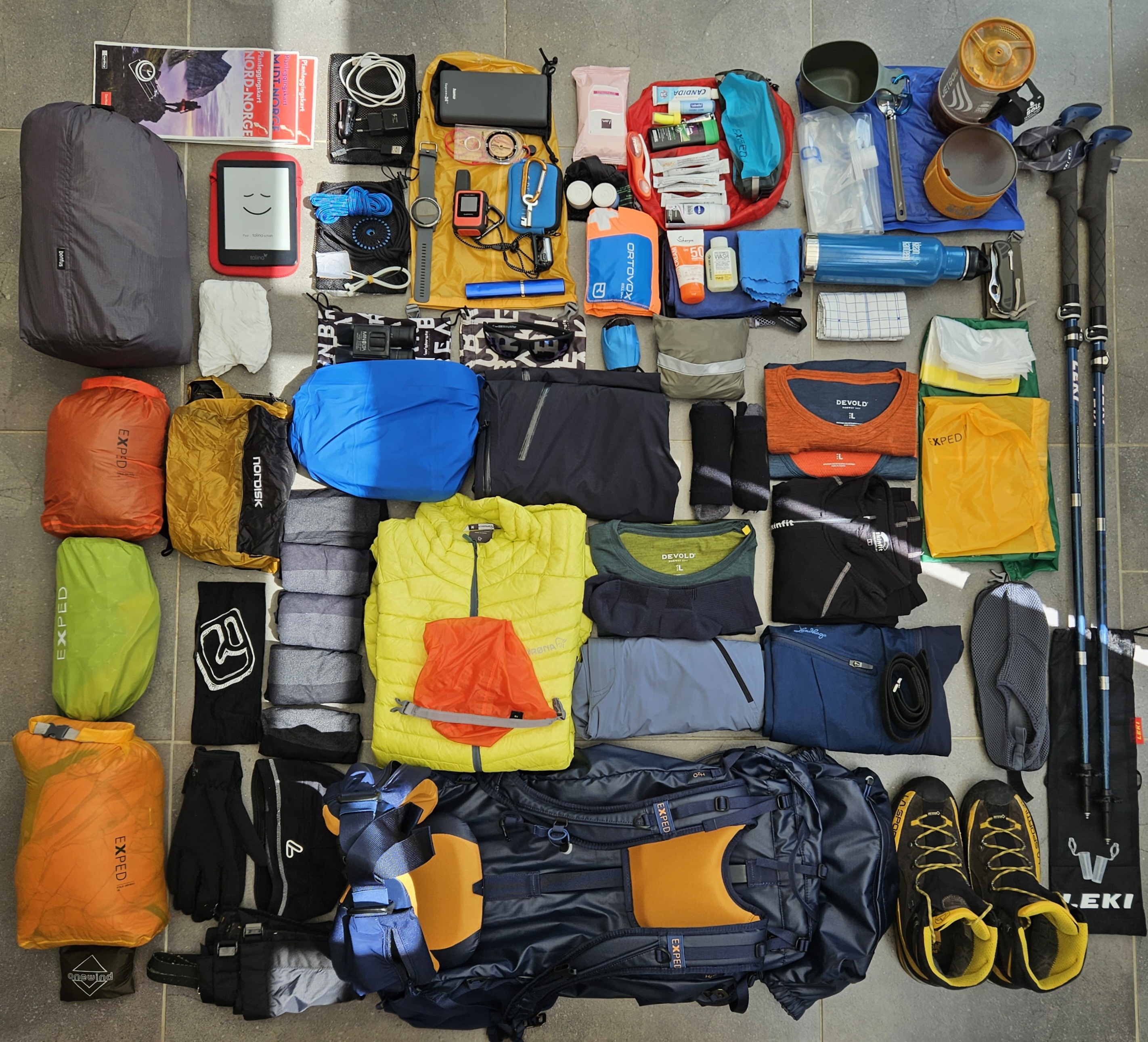 Abgesehen von den Schuhen und ein paar kleineren Anpassungen, wie zum Beispiel der Wechsel beim Jetboil Kocher zum Typ MiniMo, ist praktisch alles gleich geblieben. Die Ausrüstung hat sich letztes Jahr in Norwegen und Schweden bestens bewährt und ist auch genug ausgetestet worden.
