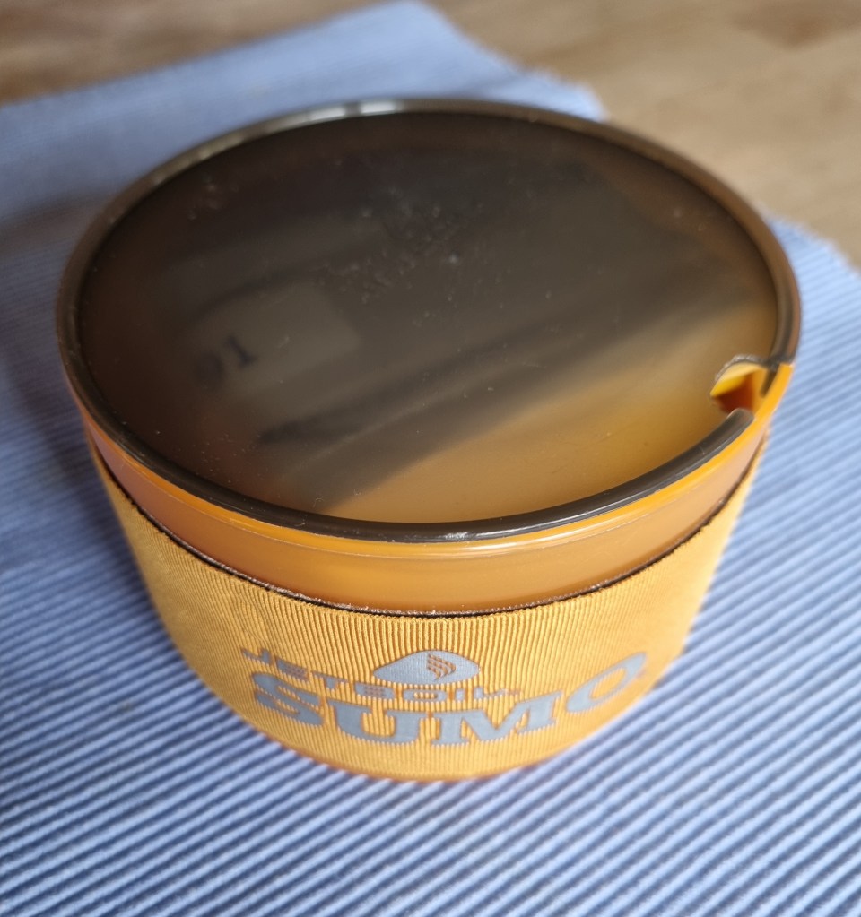 Zu meinem ultraschnellen Jetboil SolTi Gaskocher, gehört auch das dazugehörige „Geschirr“! Dieses kleine Behältnis erfüllt in perfekter Weise, meine Anforderung an ein leichtes, genügend grosses und praktisch unzerstörbares Geschirr für meine Gier nach Nuddelsuppe zum Lunch! Seit ein paar Jahren stehe ich auf diese kleinen Fertignuddelsuppen für unterwegs, die mit ein bisschen heissem Wasser eine stärkende und wärmende Mahlzeit garantieren. Der Hitzeschutz um den grossen Becher, die Einkerbung im gut verschliessenden Deckel für den Löffel, machen das bisschen Plastik zum perfekten Reisebegleiter in der „Unterwegs-Küche“.