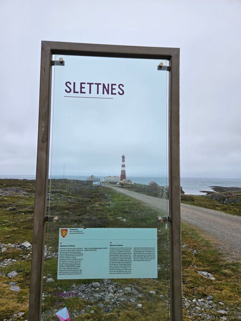 Kaum ist das Taxi weg, rollt auch schon Jan Eirik an und wir begeben uns auf den Weg nach Slettnes. Jan Eirik ist Mitbesitzer des Museums in Gamvik, welches auch den Leuchtturm verwaltet. Zudem betreibt er eine Herberge und ein Café am Leuchtturm im Wärterhaus. Er erzählt mir bei der Fahrt, dass das Haus 2024 eigentlich geschlossen ist, da alle Gebäude beim Leuchtturm von schädlichen Asbestplatten an der Fassade befreit werden. Da mache es keinen Sinn auf der Baustelle Gäste zu bewirten, aber mich würde dies wohl kaum stören und er freut sich sehr, dass ich mich entschieden habe, meine Norge på langs Tour am Leuchtturm zu starten und nicht am Nordkinn. Er erzählt mir viel über die Geschichte des Leuchtturms, von der Ortschaft Gamvik und dass das Nordkinn ein Hotspot für Ornithologen und Vogelfreunde aus aller Welt ist. Nirgendwo in Norwegen gibt es eine solche Vielfalt an Vögeln wie hier, was mich überaus neugierig auf die nächsten Tage macht.