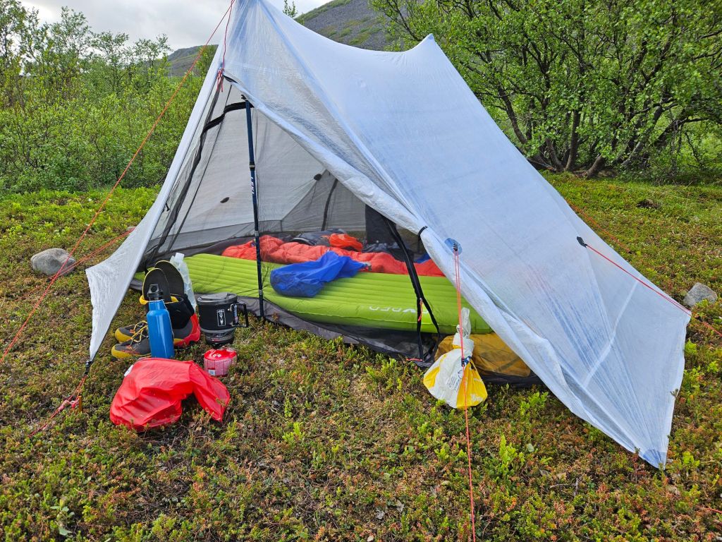 Die Nacht war kurz, also das was man hier oben Nacht nennt! Die nächsten zwei Monate muss ich mich daran gewöhnen, dass es 24 Std. am Tag hell ist und im Zelt ist dies natürlich nochmals deutlicher spürbarer. Auch haben sich in der eher sehr windarmen Nacht, die ersten Mitbewohner nervig vorgestellt: Mücken!