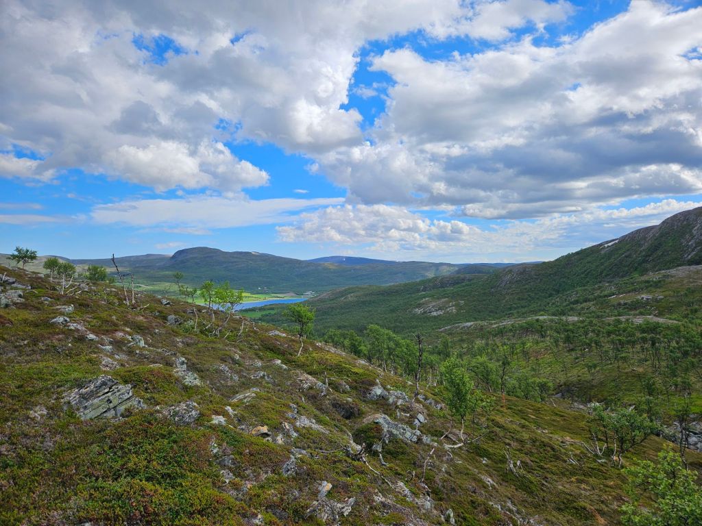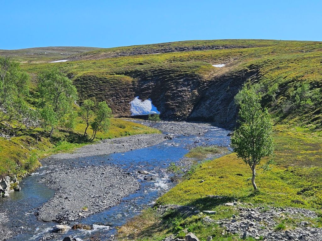 Aus Zeitgründen und der anfänglich schlechten Wetterprognose, habe ich mich frühzeitig dazu entschlossen, den Bonus: Gáissane, fallen zu lassen und der Strasse nach zu gehen. Mittlerweile hat sich Wetterprognose allerdings um 180° gedreht und es erwartet mich wunderbares Hochdruckwetter. Ich bin gerade ziemlich im Clinch, wie ich weitergehen will. Mein grosses Ziel auf den ersten Etappen war immer der grossartige Stabbursdalen National Park und jetzt hätte ich absolutes Topwetter bis nach Alta, vielleicht sogar bis durch das Nábár hindurch. Die Bonusvariante über die Gáissane würde mich aber zusätzlich mindestens vier Tage kosten.