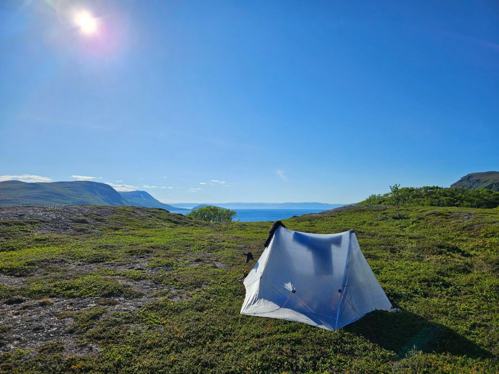 Es wird aber langsam Zeit, mir einen geeigneten Zeltplatz zu suchen und schon bald erkenne ich einen herrlichen Platz, mit wunderschöner Sicht auf den Fjord.