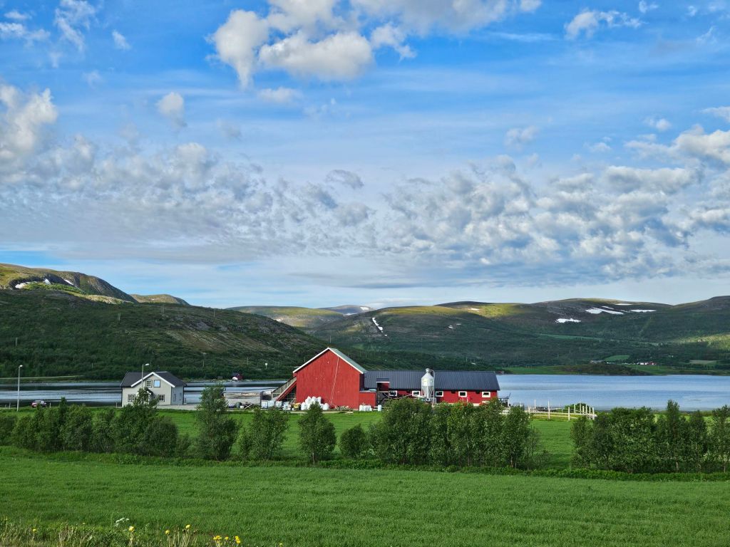 Der vierte Tag beginnt wie der dritte aufgehört hat, mit purem Sonnenschein! Temperaturen 5.30 um die 20 Grad, lassen schon die ersten Schweissperlen auf der Stirn zurück, als ich Bekkarfjord erreiche. Dieser kleine Ort beherbergt die drei nördlichsten Landwirtsschaftsbetriebe der Welt.