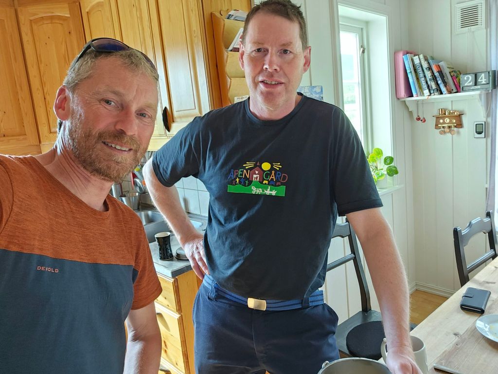 Und schon sitze ich bei Pedder in der Küche und geniesse ein 1a Frühstück. Über eine Stunde erzählt er mir von dem Leben hier, seinen Träumen, seiner Angst, den Hof nicht weitergeben zu können und seine ersten Ausflüge als Tour Guide für King Crab fishing Tours. (Bekkarfjord Experience). Dass er den Hof verkaufen will, tut ihm zwar weh, doch er sieht jetzt mehr Zukunft im Tourismus und da die Kinder auch schon alle aus dem Haus sind und seine Frau als Lehrerin in Lebesby einen gut bezahlten Job hat, sieht er dem ganzen positiv entgegen.