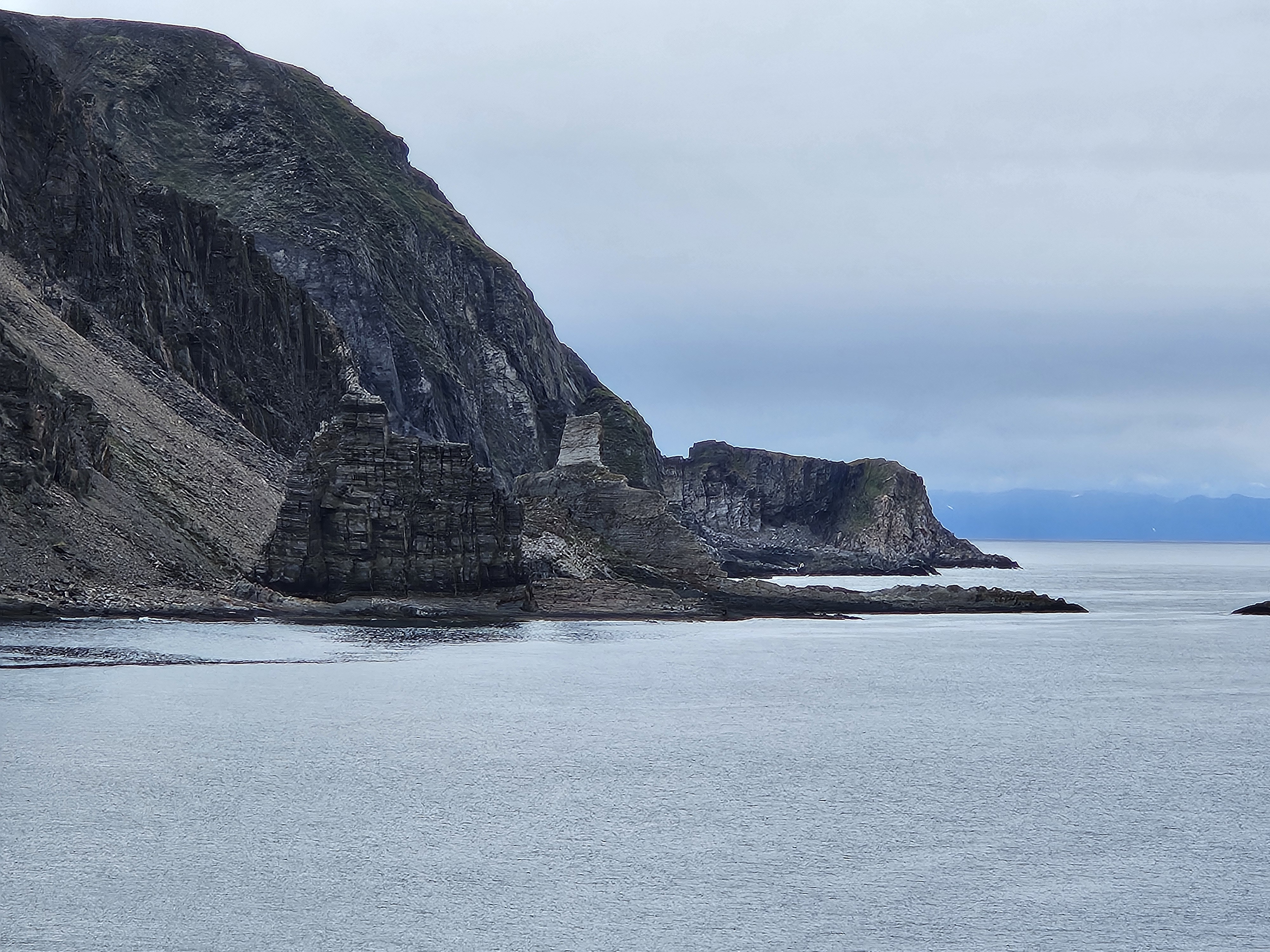 Unterwegs passieren wir kurz vor dem Stop in Kjøllefjord die berühmten Finnenkirchen an der steilen Felsküste. Die „Lille Finnkjerka“ sind rund 600 – 700 Millionen Jahre alte Felsformationen, die den heftigen Stürmen an dieser Küste standhalten.