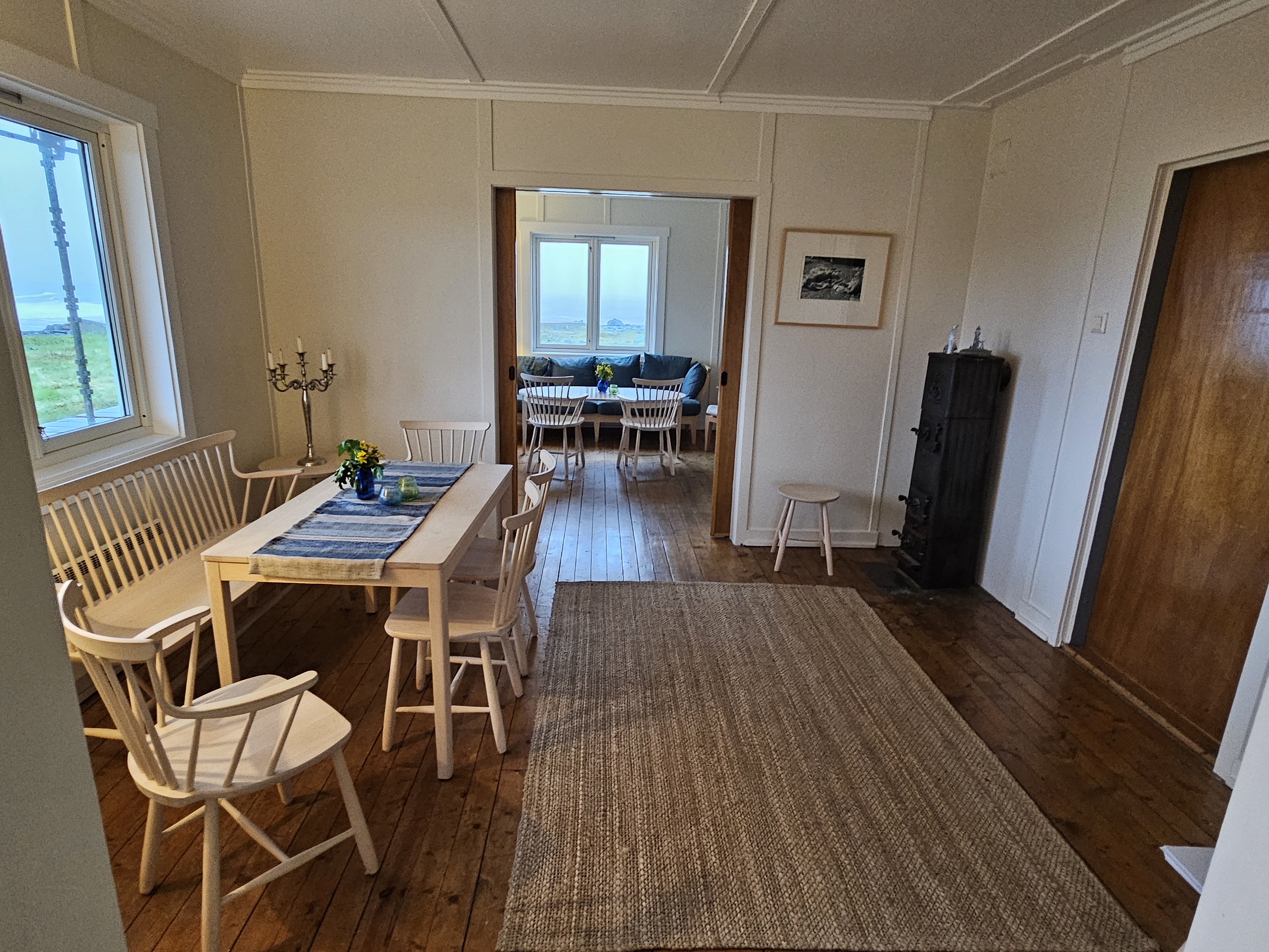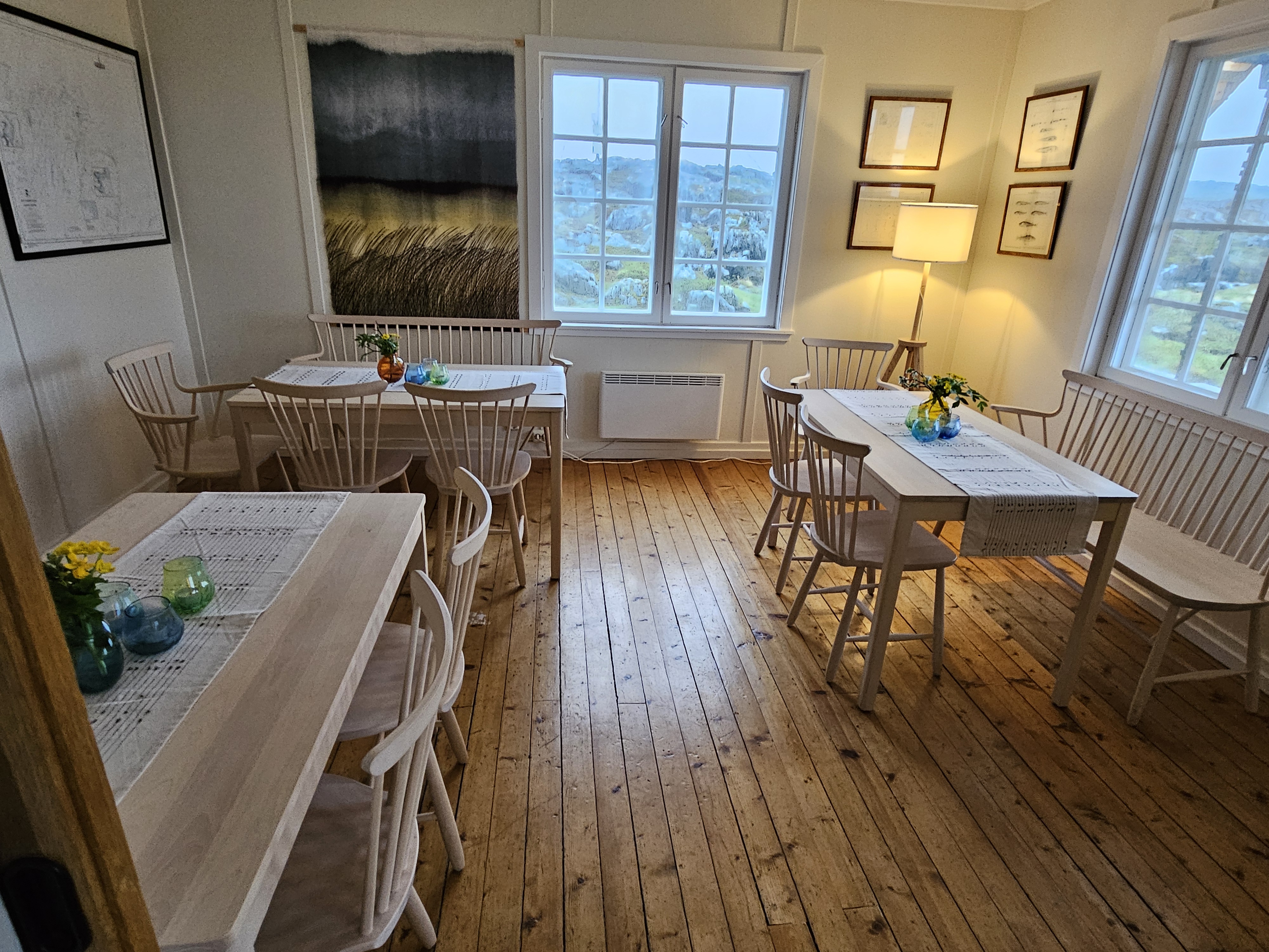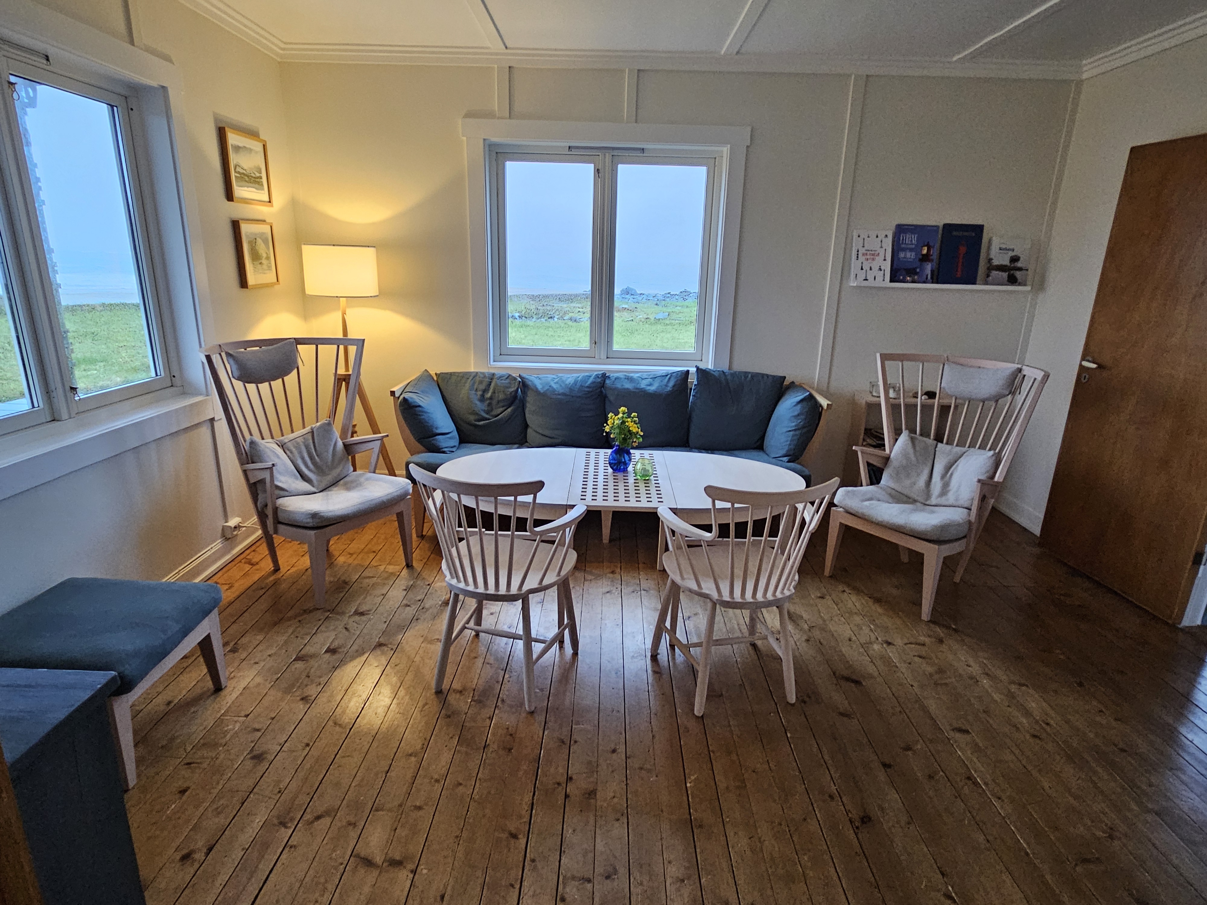 Jan Eirik bringt mich zum Wärterhaus und zeigt mir mein Zimmer. Ich habe das ganze Haus für mich! Das Café wurde gerade letztes Jahr renoviert und auch die Zimmer sind traumhaft schön. Jan Eiriks Frau hat am Nachmittag extra noch überall Blumen hingestellt und alles etwas wohnlicher gemacht. Eigentlich wäre heute auch ein grosses Fest hier, wie jedes Jahr am längsten Tag des Jahres: Midtsommer. Wegen dem grauen Wetter, habe ich diese Tatsache schon etwas ausgeblendet, obwohl dies auch der Grund für meinen eher etwas späten Start der Tour war. Aber mit der Mitternachtssonne am längsten Tag des Jahres, wird es heute definitiv nichts.