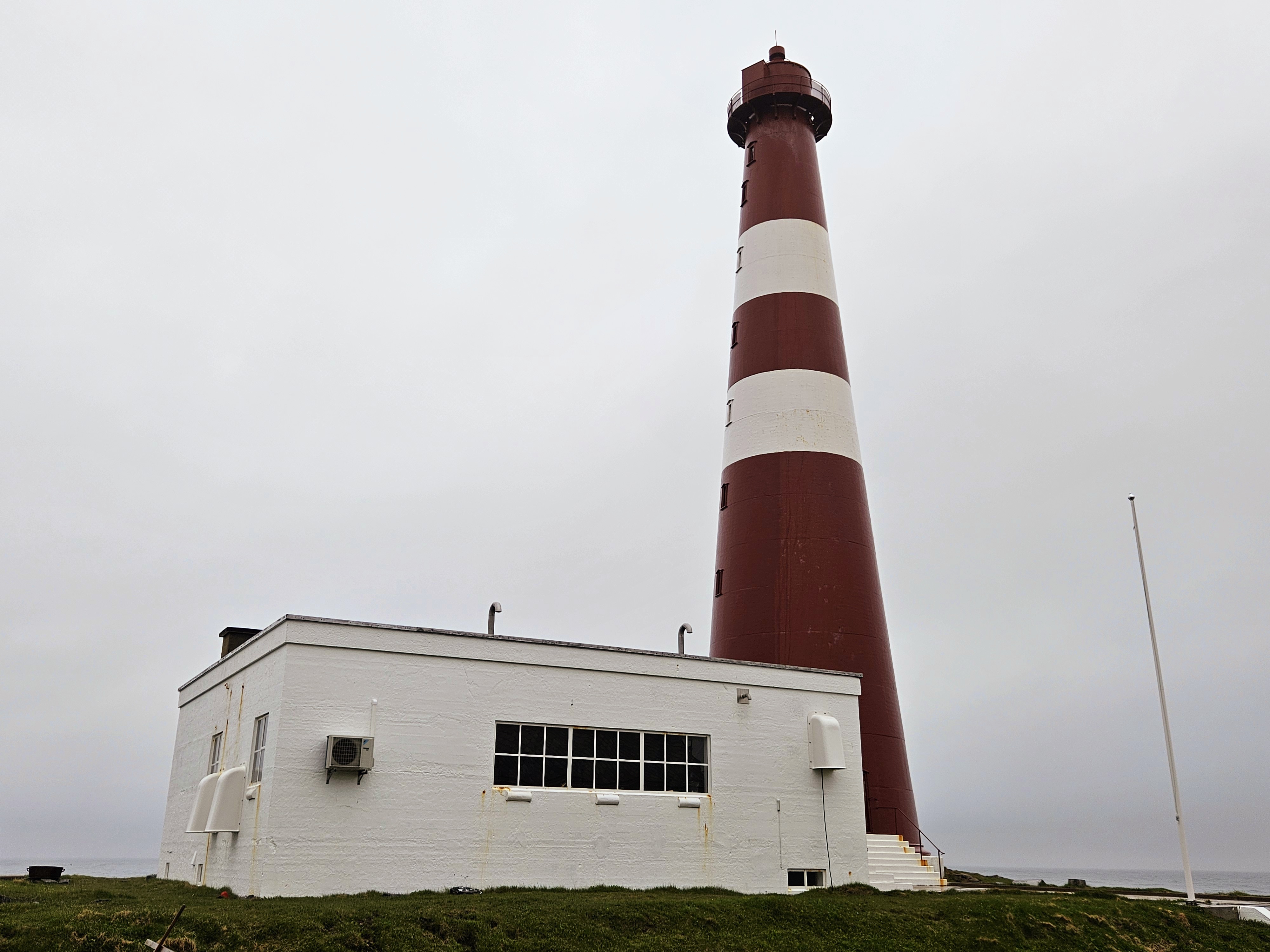 Ich schliesse die Eisentüre auf und ziehe die Türe hinter mir wieder zu. Der Turm besteht aus fast 8 cm dickem Stahl und schützt perfekt vor dem extrem rauen Wetter hier oben. Der Leuchtturm wurde im 2. Weltkrieg von der deutschen Wehrmacht komplett zerstört und danach von den Einwohnern hier wieder aufgebaut. Der Leuchtturm ist nicht nur der nördlichste massive Leuchtturm Norwegens oder Europas, es ist der nördlichste der Welt. Ich hatte schon immer ein grosses Faible für Leuchttürme, aber hier ergreift mich gerade sehr viel Ehrfurcht und Staunen.