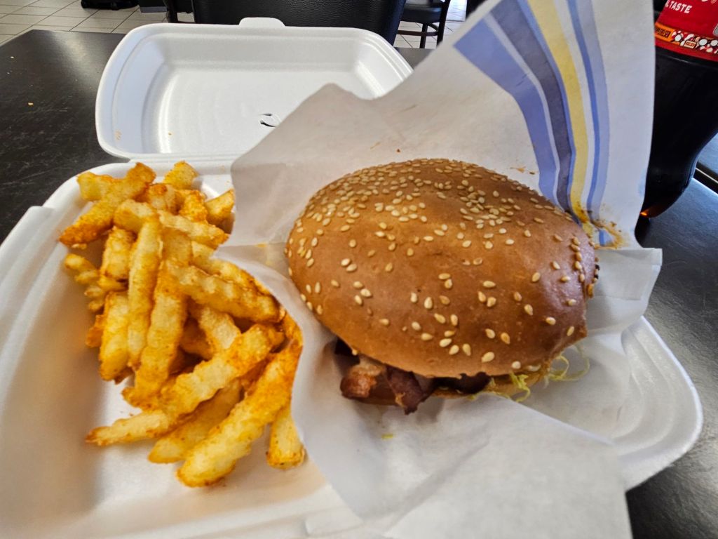 Als ich Spangereid erreiche, gibt es zuerst noch etwas Futter für die letzten Kilometer und sehr wahrscheinlich einen letzten Hamburger für die nächsten Wochen! Es waren derer viele in den knapp vier Monaten.