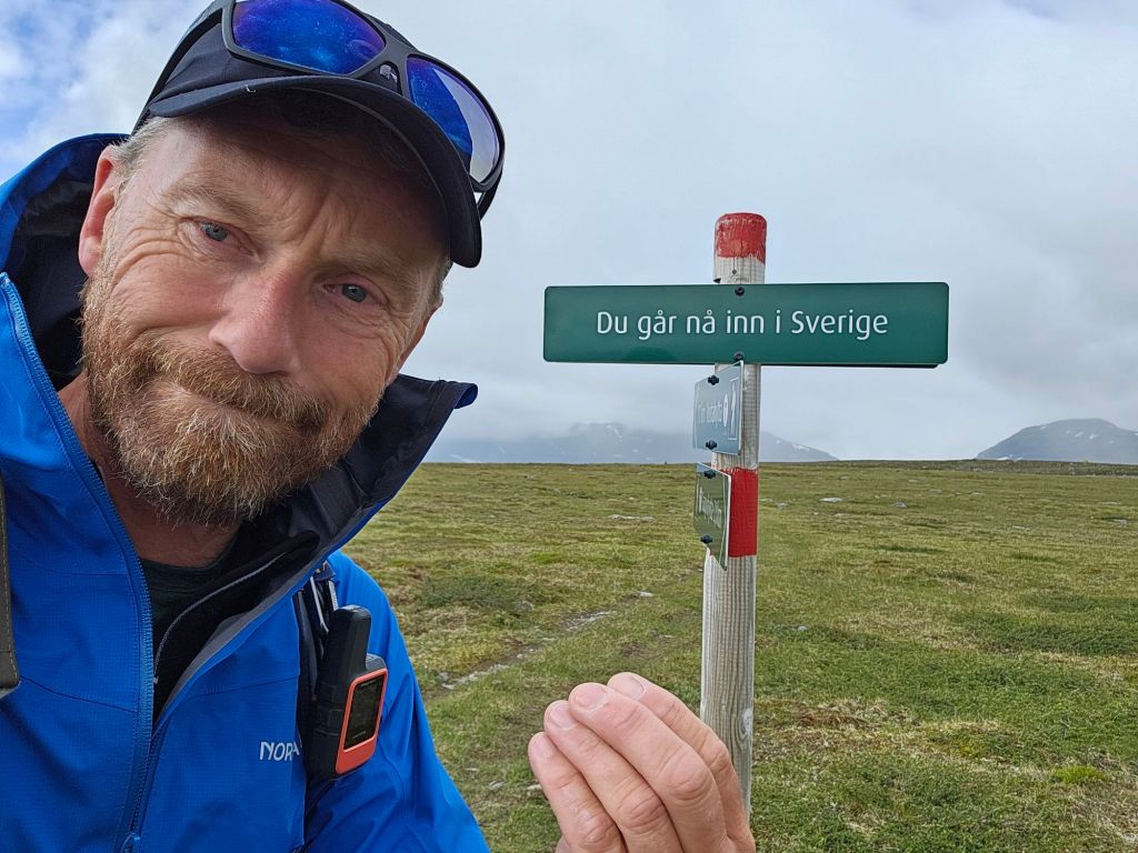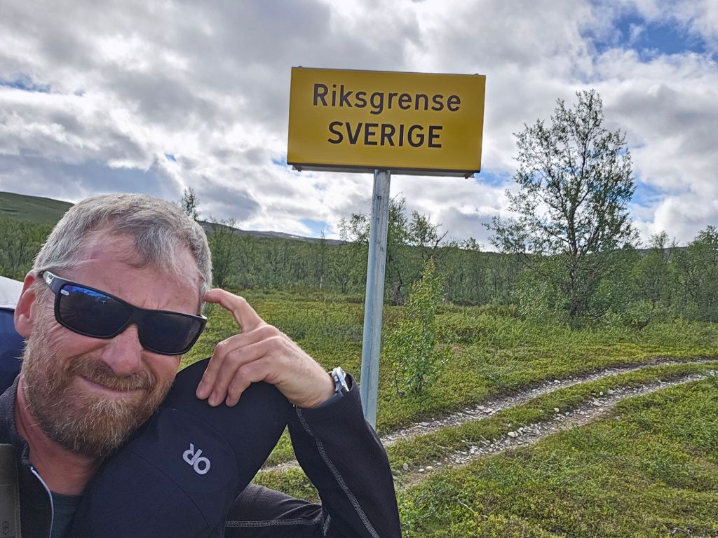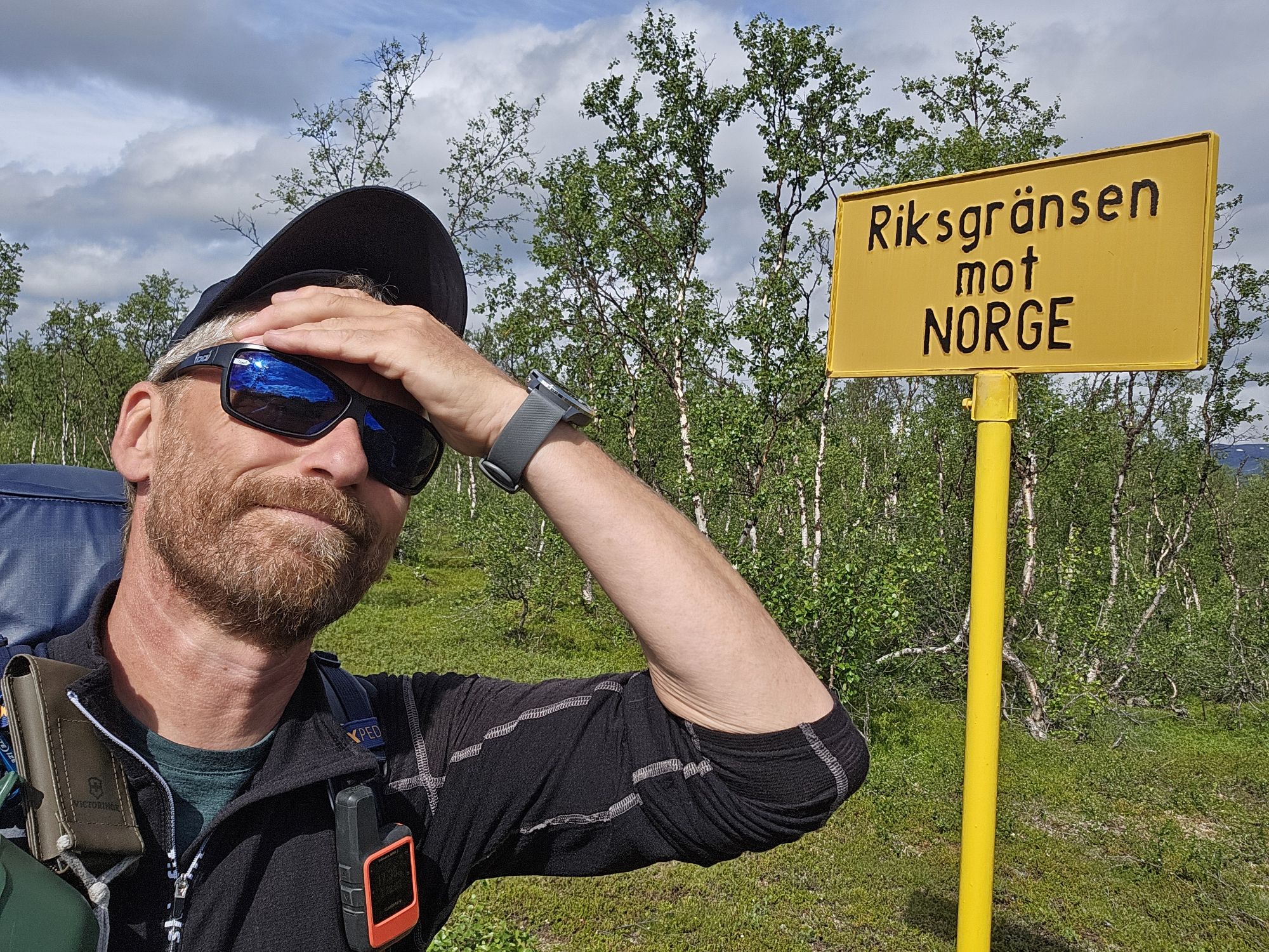Mit zwei voll beladenen Booten und somit 250 Menschen geht es die halbe Stunde rüber zum Dreiländereck. Kaum angekommen, zünde ich trotz Schmerzen den Turbo, um möglichst einen Vorsprung auf die Herde Fototouristen zu bekommen. Wenn ich schon ein Erinnerungsbild am Treriksrøysa (norwegisch), Treriksröset (schwedisch), Kolmen valtakunnan rajapyykki (finnisch) machen will, dann möglichst nicht inmitten einer Horde Menschen.