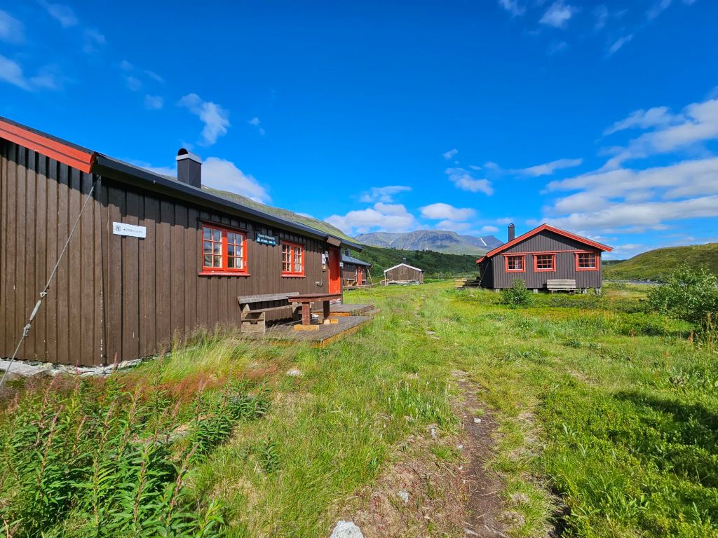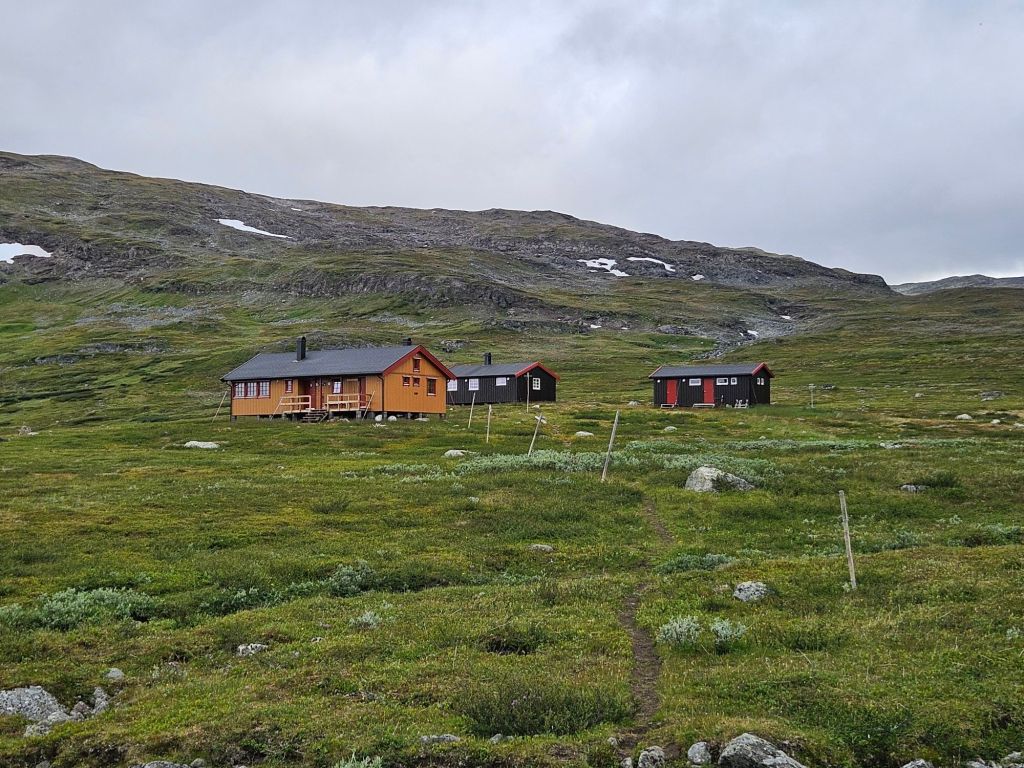 Der Weg zur Hütte ist nur noch kurz und schon von weitem sehe ich die grossen Häuser. Als ich zwischen den Hütten ankomme, ist es menschenleer und still. Komisch…jetzt ist Hauptsaison, bestes Wetter und die Wanderbedingungen könnten nicht besser sein. Klar, morgen ist Regen angesagt, aber gerade für die Einheimischen ist das absolut kein Grund, nicht raus zu gehen. Anders als bei uns, gibt es hier definitiv kein schlechtes Wetter bei den Menschen. Und selbst wenn es so richtig runterhaut, sind die Norweger/innen im Fjell unterwegs. Na mir soll es recht sein, so habe ich mehr als genug Platz und kann die Stille geniessen.