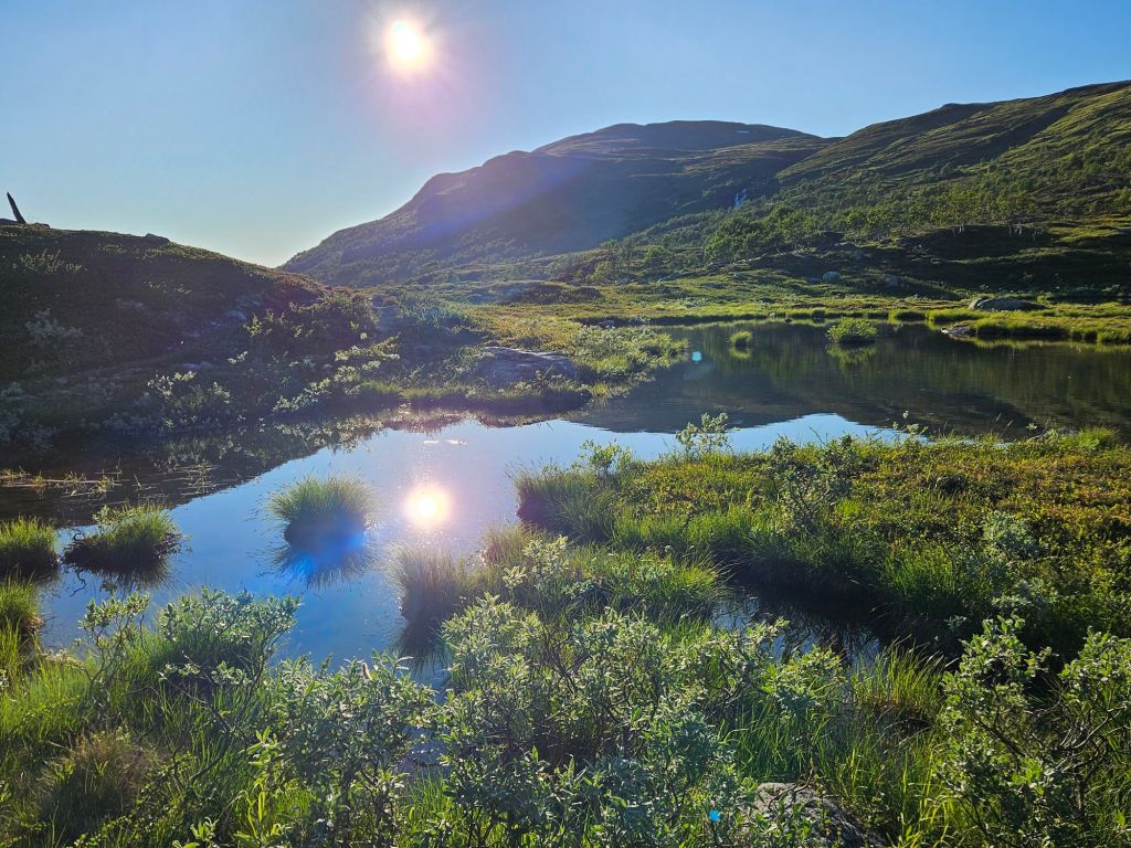 Nicht nur dass das Rostafjell ein wunderschöner Ort ist und phantastische Aussichten zu bieten hat, heute ist auch noch ein Wetter für die Götter! Die Sicht ist kristallklar und die Sommerstimmung ein Traum. Rosta ist aber auch für seine Mücken bekannt, doch auch hier…(zum Glück!) Fehlanzeige.