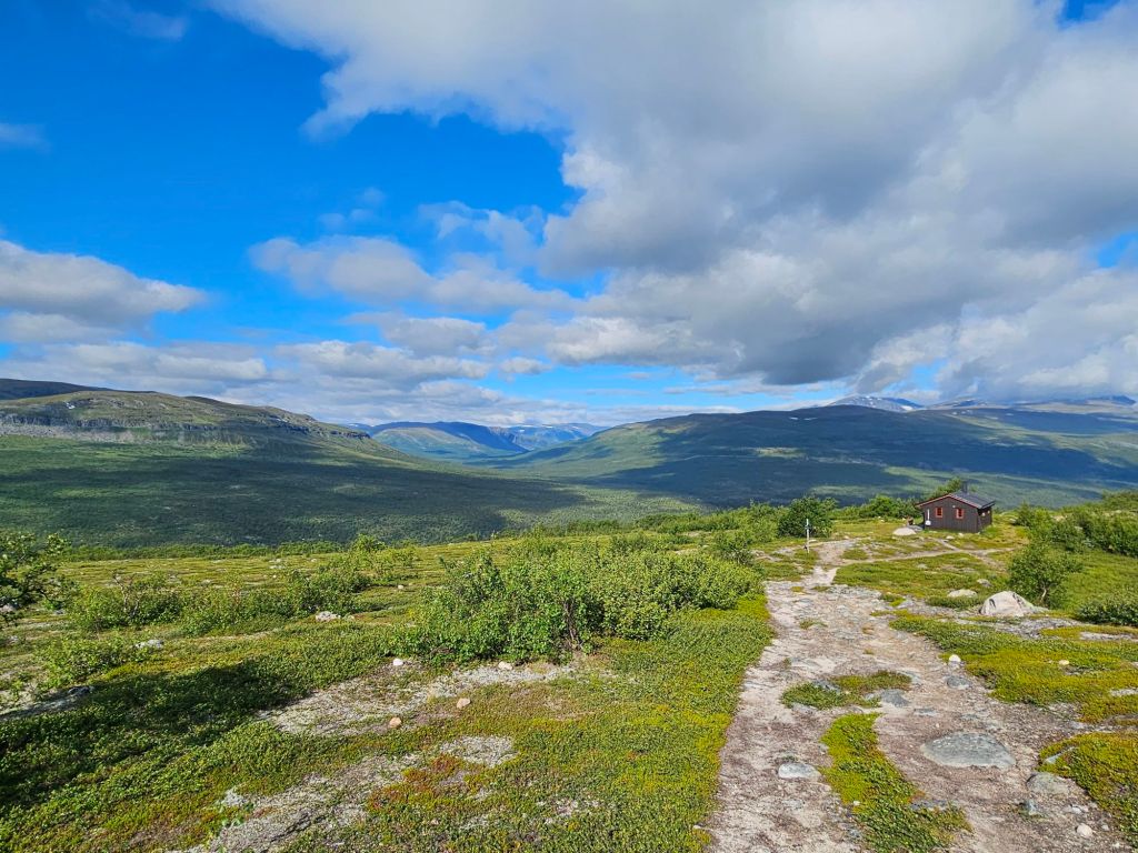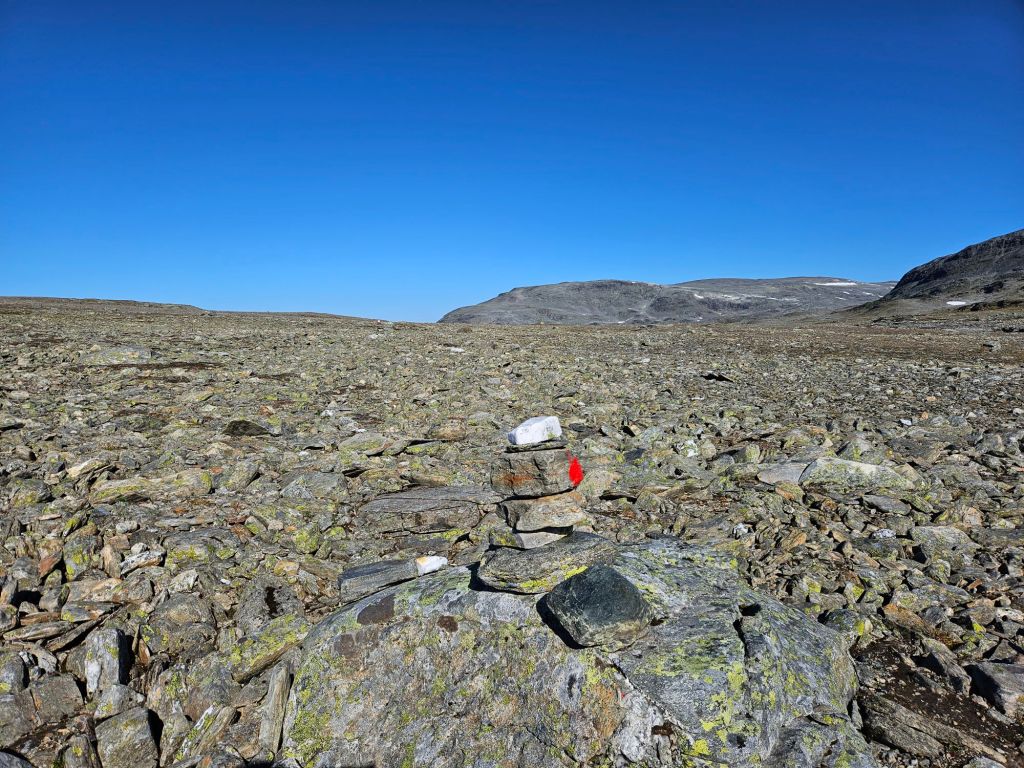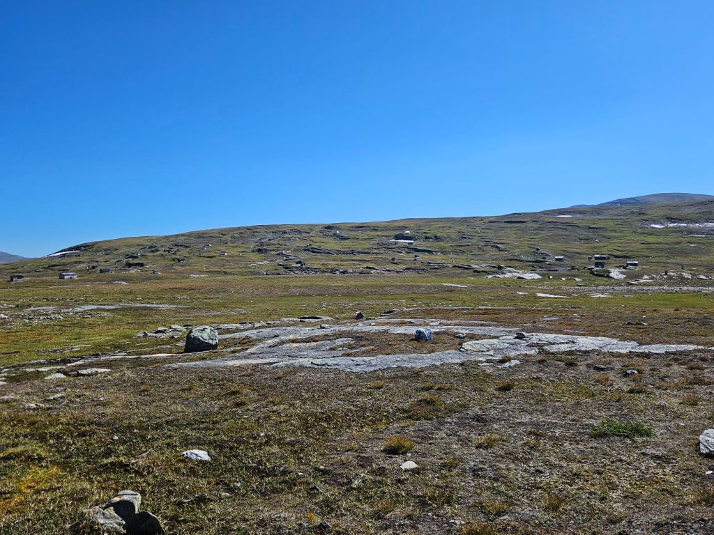 Wenn man vom Süden her Richtung Dærtahütte läuft, sieht man die Hütte schon über die ganze Ebene hinweg am Horizont. Es dauert dann noch etwa zweieinhalb Stunden bis man ankommt, was ziemlich frustrierend sein kann, da diese Tagesetappe auch die mit Abstand längste ist auf diesem Abschnitt. Läuft man gegen Süden, hat man aber schon fast einen Viertel des Tages hinter sich, wenn die Hütte hinter dem Hügel verschwindet.
