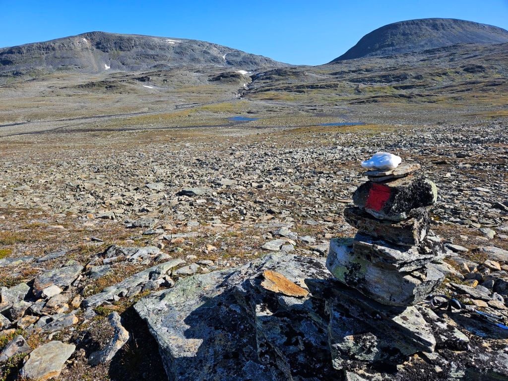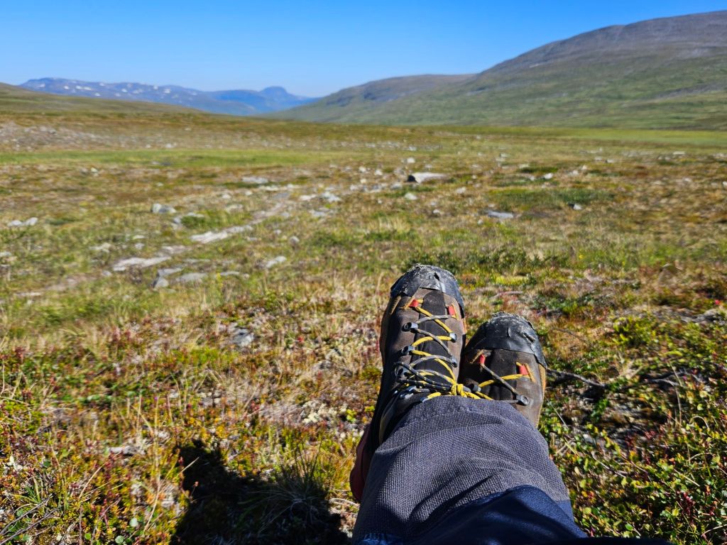 Die 16 Kilometer zur Gaskashütte sind bei diesen Bedingungen schnell zurückgelegt und so geniesse ich dort eine lange Mittagspause. Ab hier ist nun auch wieder Mobilfunkempfang und ich sehe kurz nach meinem Paket. Hmpf… es hängt tatsächlich immer noch in Oslo fest, obwohl es ein Priority Paket und der Zoll auch schon erledigt ist. Ich habe noch drei Tage nach Narvik und dort ist ein Ruhetag vorgesehen, das wird doch genügen? Ich bin zwar sehr erfreut, dass meine Schuhreparatur super geklappt hat und auch noch gut hält, doch weiter als Narvik wird das wohl nicht halten, gerade im sehr steinigen Narvikfjell!