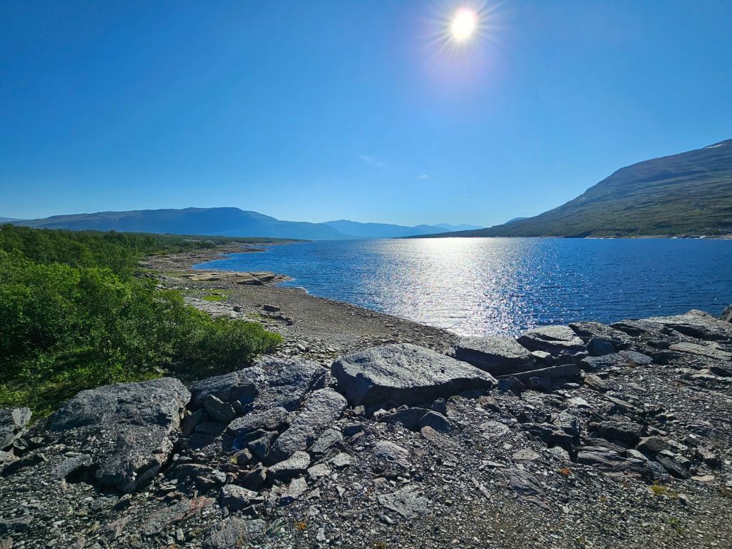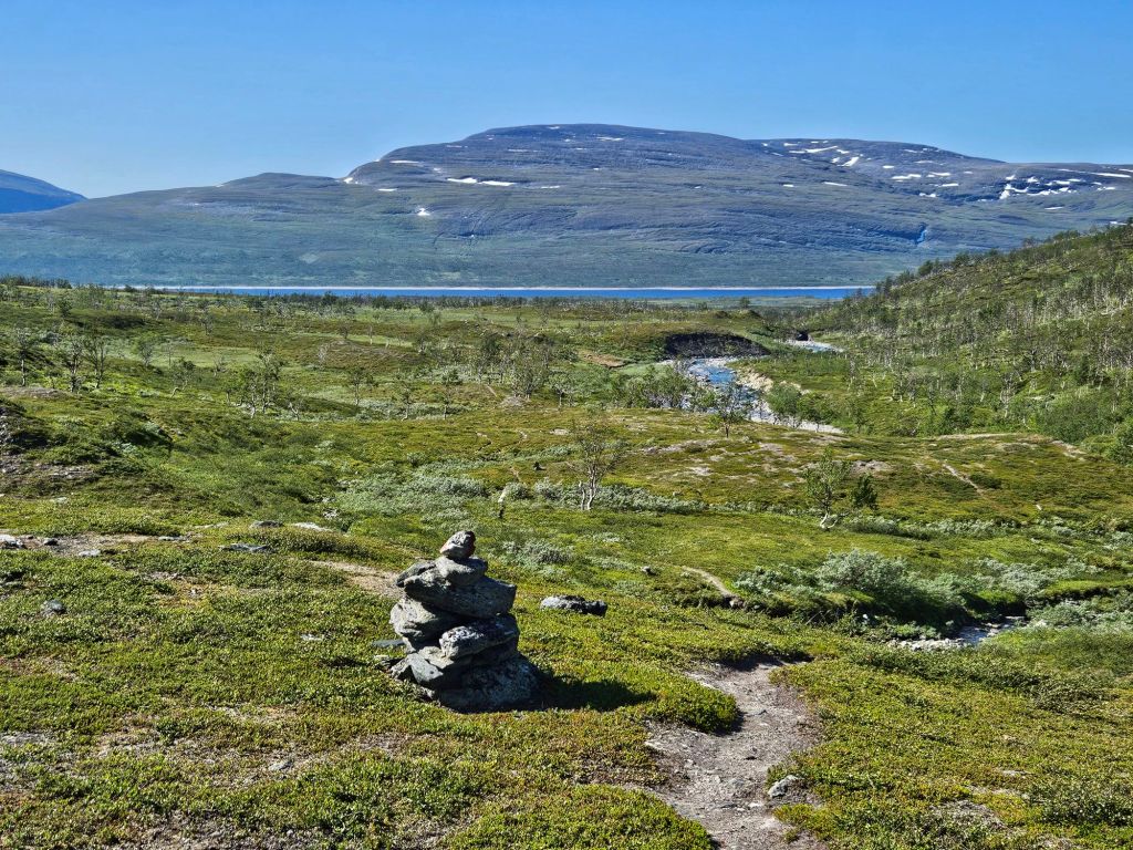 Entlang des Torneträsk geht es im ewigen auf und ab zur Strasse. Dieser Weg ist definitiv nicht das ganz grosse Highlight und zieht sich oft sehr lange dem Torneträsk entlang. Aber dann ist es endlich geschafft und der Verkehrslärm deutet auf die Strasse hin.