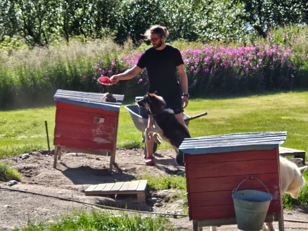 Für den nächsten Tag, plane ich eine Hütte zu überspringen (Gaskas DNT) und runter zur Husky Farm von Björn Klauer zu gehen. Dort arbeitet Alex Denk (Wanderbursche) seit ein paar Jahren. Er ist 2018 vom spanischen Tarifa bis ans Nordkap gewandert und unterwegs bei der Husky Farm vorbeigekommen. Er hat sich in den Ort verliebt und ist schlussendlich dort hängengeblieben. Ich hatte 2018 Alex via seinen Blog verfolgt und er ist mir sofort aufgefallen. Seine Art, sein Denken und seine Unbekümmertheit mit einer solchen Extremwanderung umzugehen, haben mich sehr beeindruckt. Immer wieder treffe ich in Hüttenbüchern auf seine Einträge, seine Zitate, seine Gedanken und ich komme nicht umhin, mich vom Wanderburschen ziemlich inspiriert zu fühlen. Es ist ganz grosses Glück, dass ich Alex noch treffen kann, denn er ist gerade in den Vorbereitungen zu seinem Urlaub. Durch den Vorsprung den ich auf meine Wandertabelle habe, klappt es nun doch noch, was mich super freut.