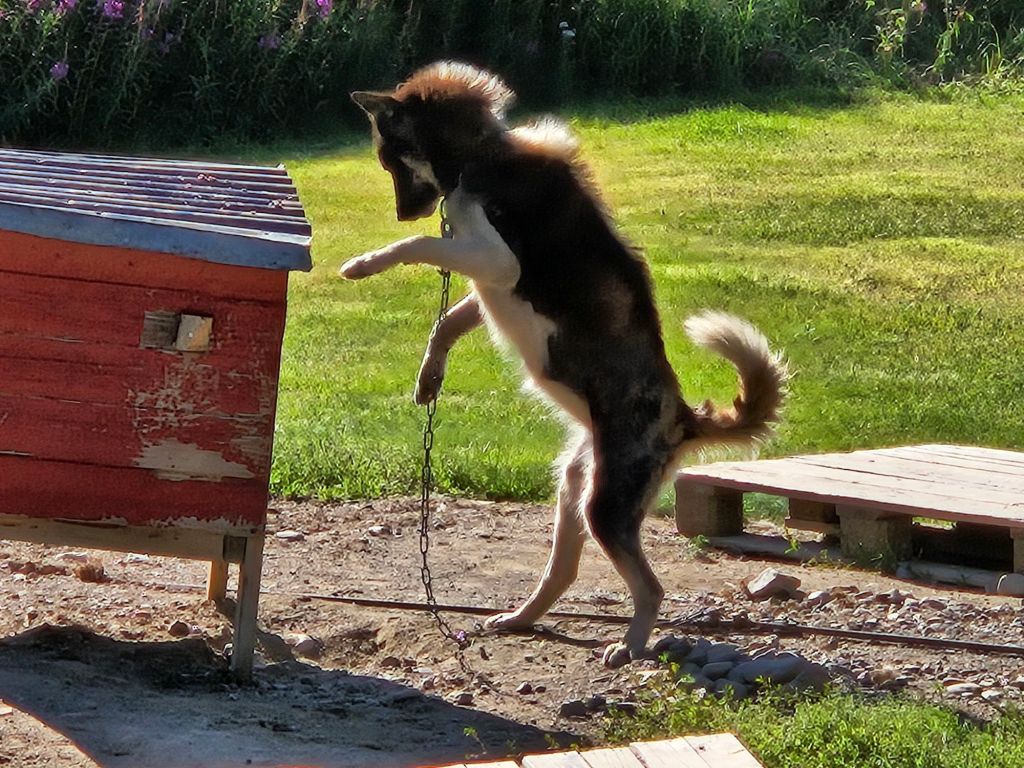 Schon rauscht Alex mit seinem Jeep heran und ich freue mich sehr, ihn endlich zu treffen. In der Husky Farm werden wir gleich von 85 Huskys lautstark empfangen. Jedoch nicht zu meinen Ehren, denn Alex hat demnächst gleich eine Fütterung anstehen, die ich nicht verpassen will.