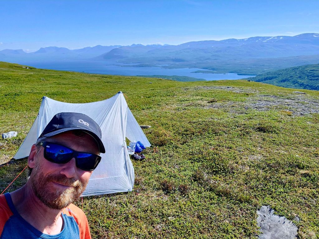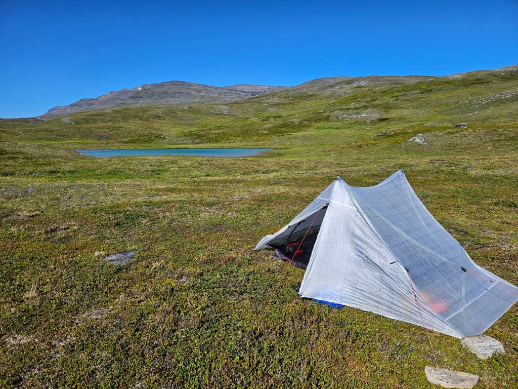Eigentlich hat es hier unendlich viele geniale Zeltplätze, doch das absolute Highlight finde ich keine zwei Kilometer vor der Lappjordhütte, oberhalb am Tornesvasslia.