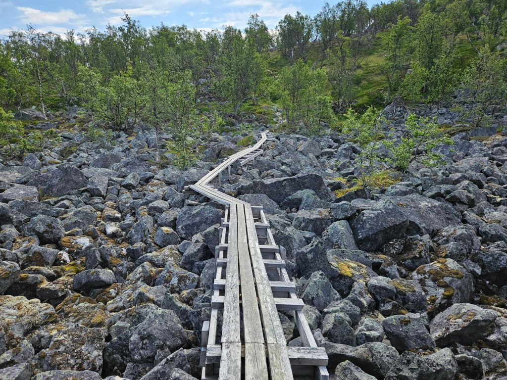 Der Ruhetag in Kilpisjärvi tut richtig gut und all meine Batterien sind vollgeladen. Die nächste Etappe nach Narvik gehört sicher nicht zu den anspruchsvollsten, da die Wege sehr gut sind und das Terrain relativ einfach zu begehen ist. Doch die Distanz ist nicht zu unterschätzen und es gibt sehr viel zu sehen unterwegs. Es macht sicher Sinn, die ganze Etappe nicht im Eilzug zu machen, sondern sich Zeit zu lassen und auch zu geniessen. Narvik wäre wohl in rund sechs Tagen zu erreichen, doch da ich von Hütte zu Hütte gehe, werden es für mich zwischen acht und neun Tage sein.