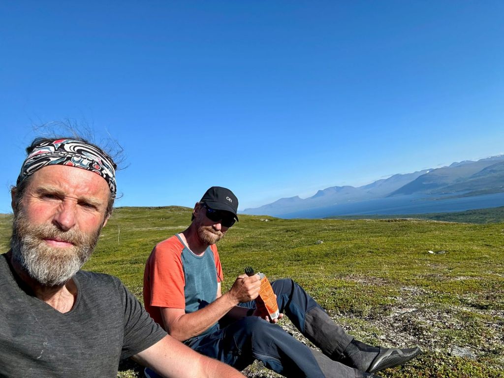 Auf der Hütte treffe ich den Niederländer Alexander. Er ist am Nordkap zu seiner Norge på langs Tour gestartet und läuft nach Hause, in sein neues Zuhause, auf der südnorwegischen Insel Hidra. Wir finden schnell den Draht zueinander, da wir beide eine ziemlich gleiche Einstellung zur Tour haben, obwohl er sie das erste Mal läuft. Alexander erzählt mir viel von seinen letzten Wochen und auch von seinen grossen gesundheitlichen Problemen. Eine Entzündung im Beckenknochen, was sich sich später als eine Schleimbeutelentzündung herausstellen soll. Magenprobleme in der Finnmark, welche seine Leistungsfähigkeit heruntergeschraubt haben. Einmal mehr wird mir bewusst, was für ein riesiges Glück ich bisher hatte mit meinen kleinen Wehwehchen!