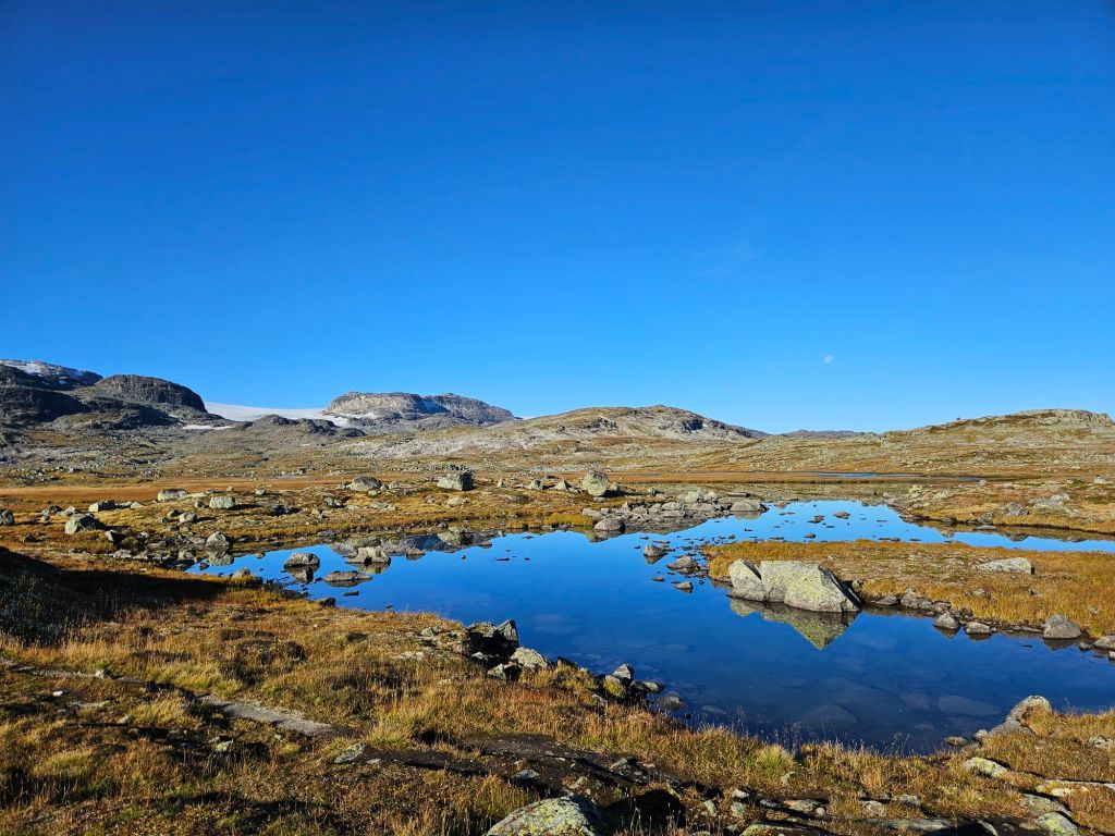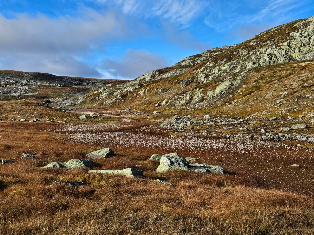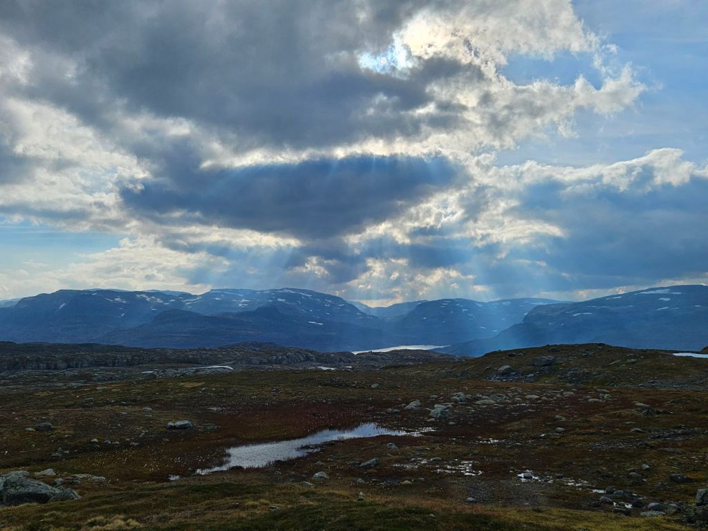 So geht es heute wohl früh ins Bett und morgen…? Die Hellevasbu ist gut 17 Kilometer entfernt, also nicht eine ganze Tagesetappe. Bis Haukeliseter sind es dann nochmals rund 22 Kilometer. Mittlerweile ist in den Wetterprognosen ein Wintereinbruch für die nächsten Tage angekündigt und das Schlechtwetter soll einen Tag früher kommen als noch gestern vorausgesagt. Somit kann ich morgen noch bei bestem Herbstwetter Haukeliseter erreichen und dann vielleicht sogar zwei Ruhetage einplanen.