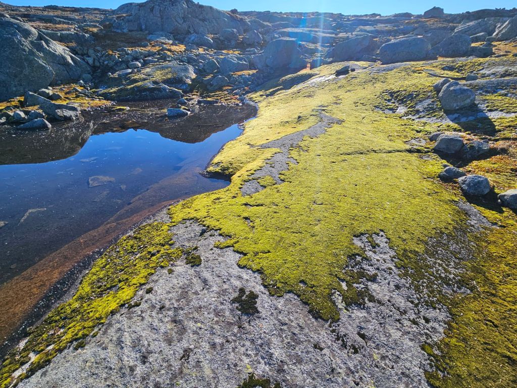 Es wird etwas steiniger und hügeliger am südöstlichen Rand des Plateaus. Die Wege sind aber super begehbar und man sieht an deren Ausmass, dass es hier im Sommer viele Leute hat. Jetzt bin ich praktisch alleine.