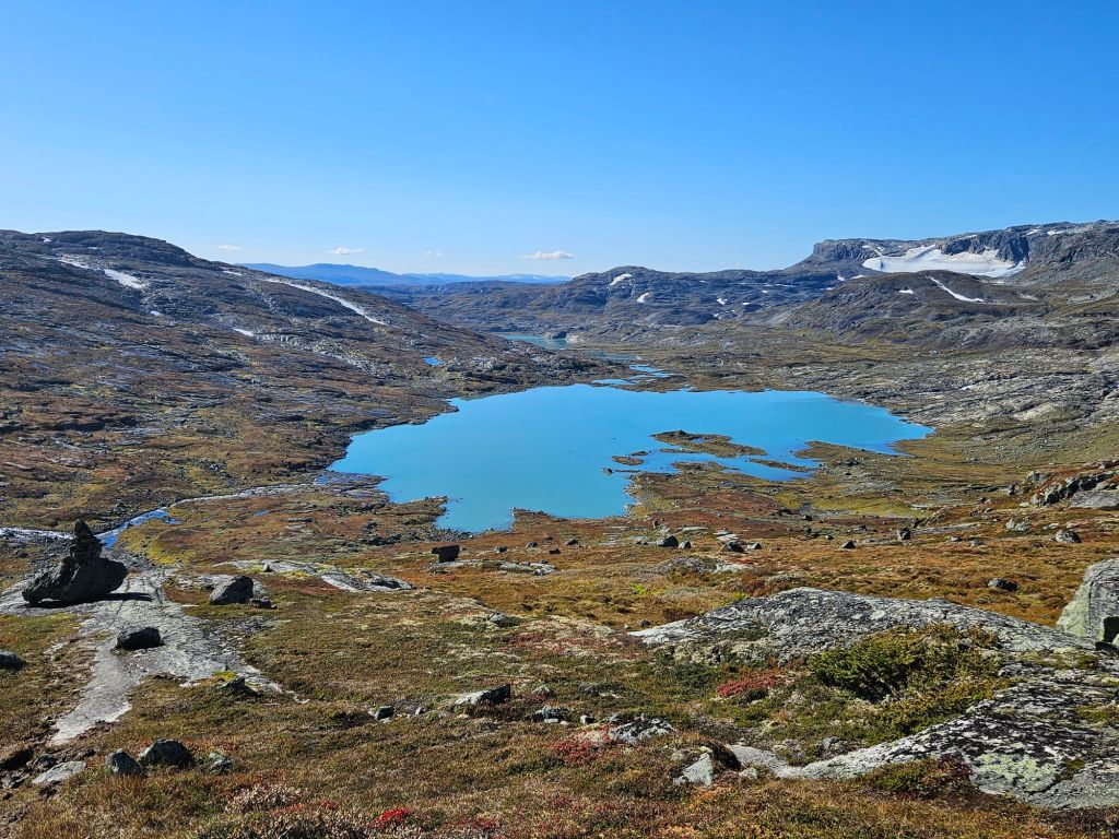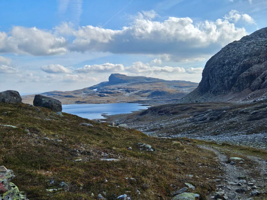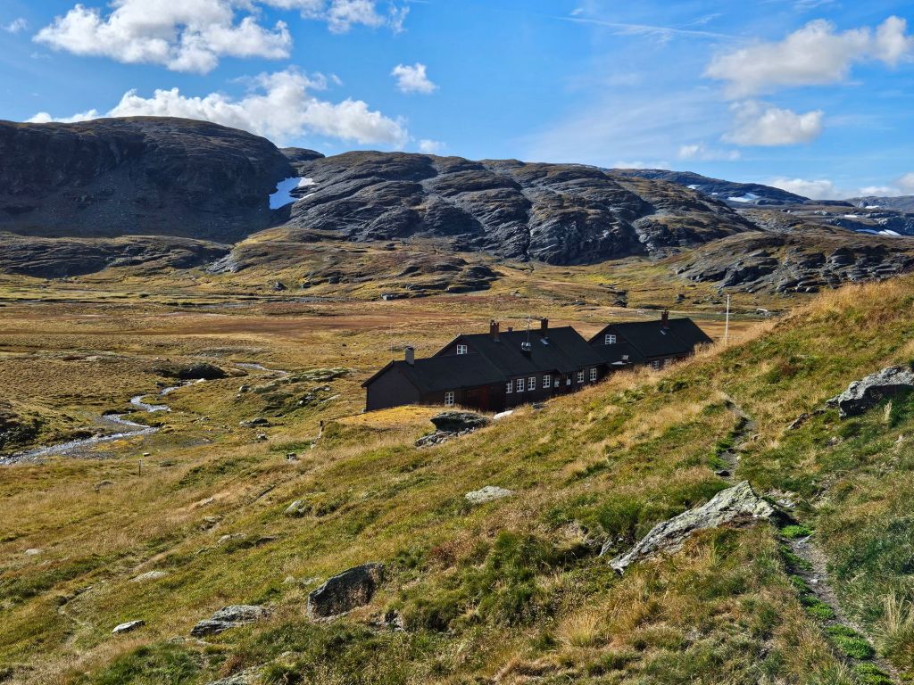 Der Weg führt entlang des Sees Nordmannslågen an der privaten, auch geschlossenen Fjellherberge Besso vorbei.