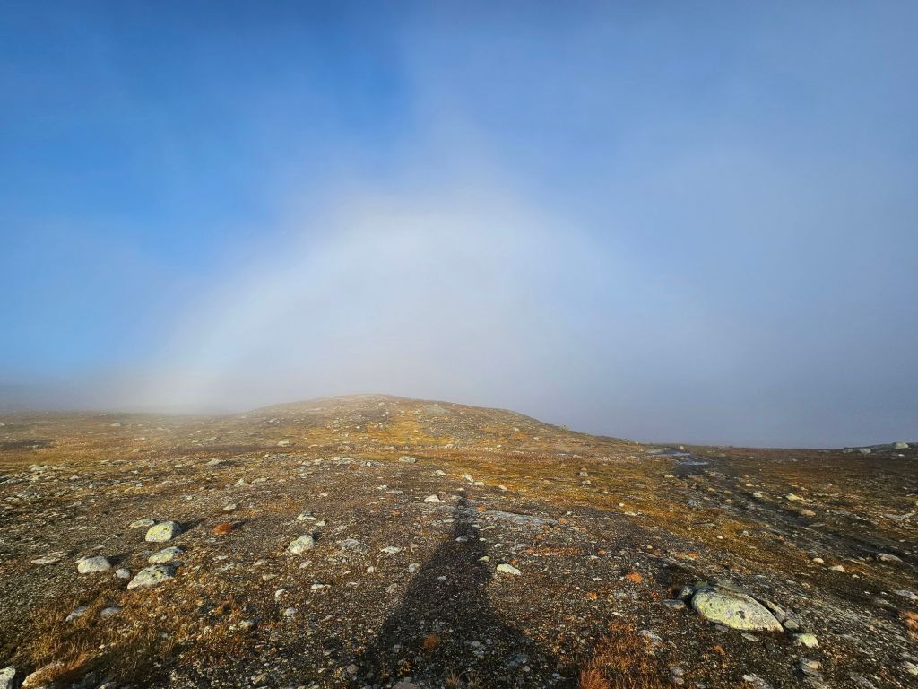 Kaum bin ich auf dem zweiten Hügel und somit auf der Hardanger Hochebene angekommen, lichtet sich der Nebel etwas und ich werde in eine fantastische, mystische Landschaft gebettet.