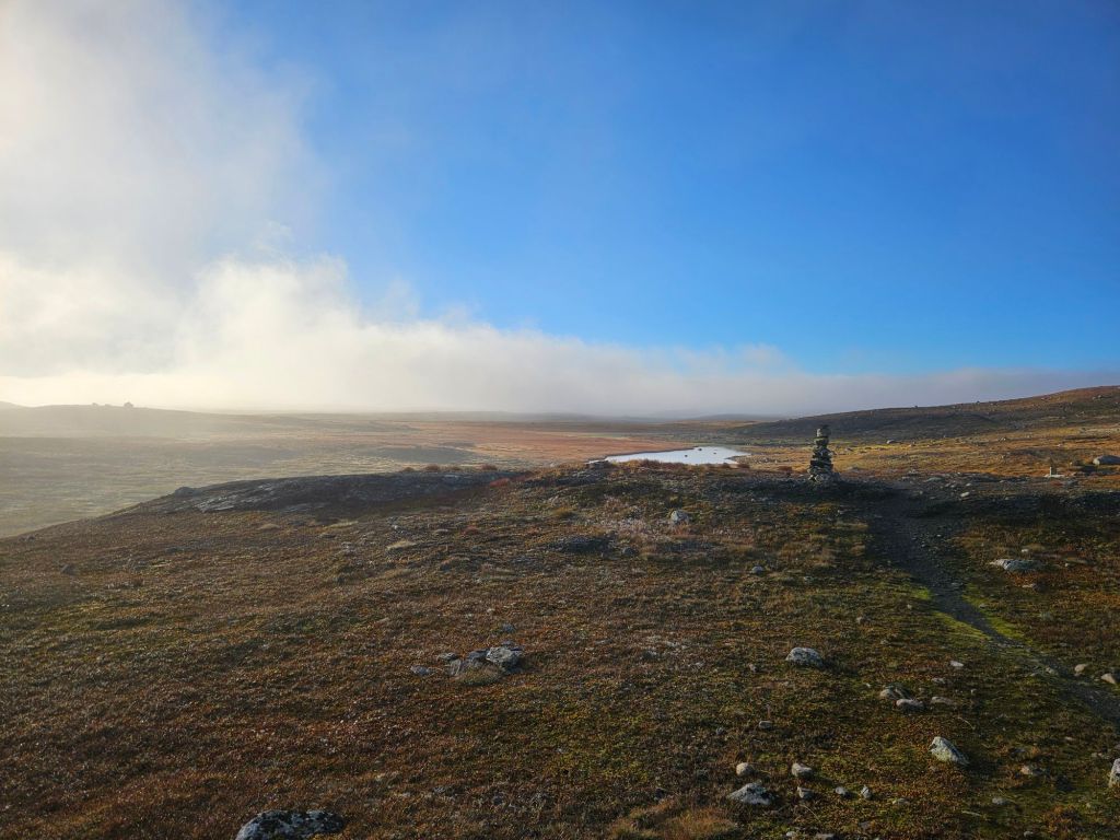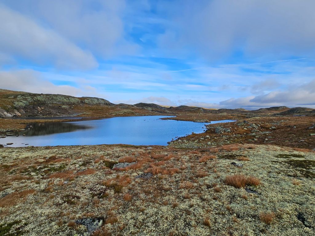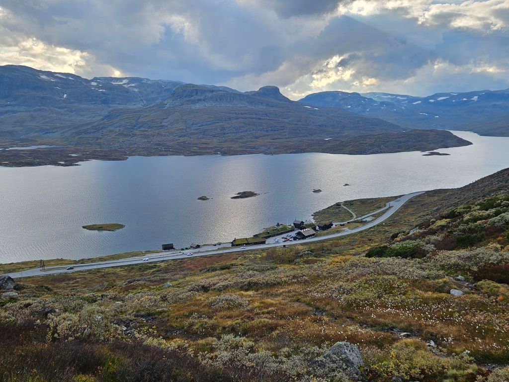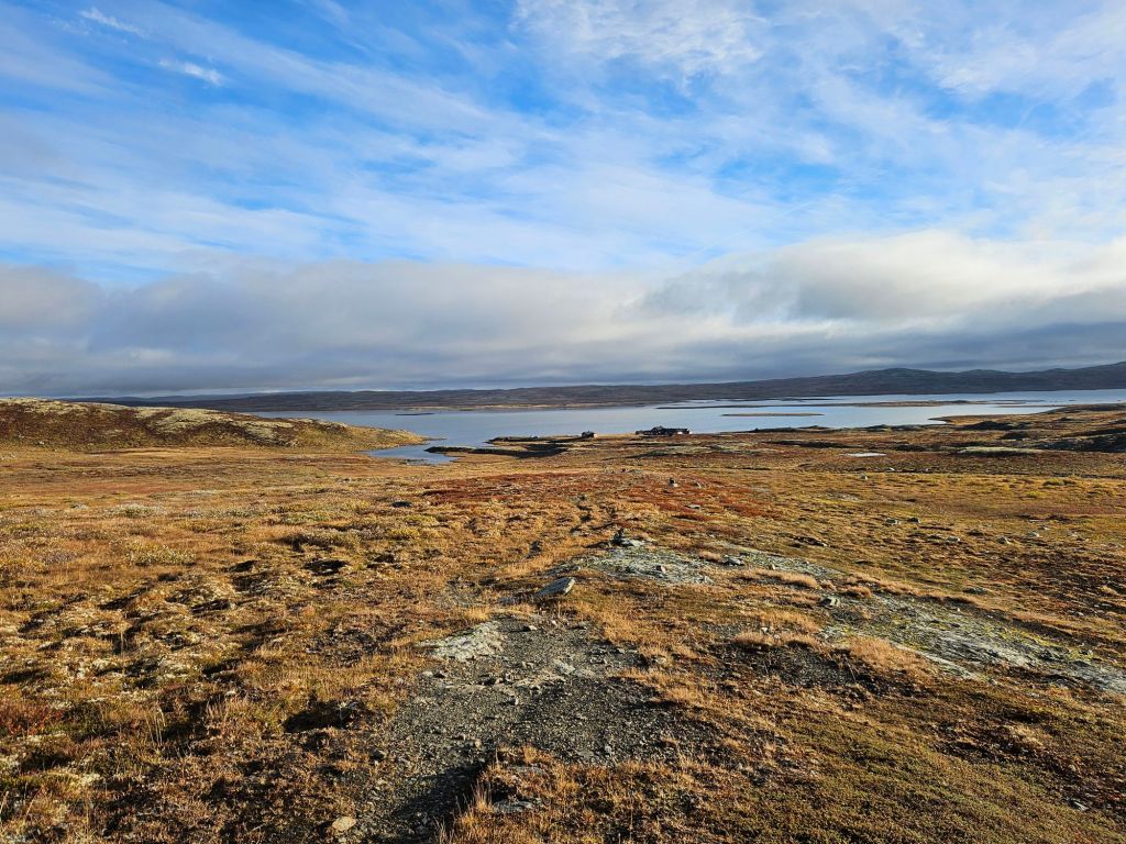 In Haukeliseter ist für mich nun mal etwas Ruhezeit angesagt, während der ich prüfen kann, wie und ob es überhaupt weitergeht. Die Wetterprognosen deuten klar auf einen Wintereinbruch mit Schnee und Minustemperaturen hin. Die Vesthei liegt durchschnittlich auf 1000-1200 MüM, ist sehr Westwindwetter exponiert und auch anfällig auf Herbststürme. 2022 habe ich hier Anfangs Oktober in der Ryfilkshejane, in der DNT Hütte Bossbu, einen Orkan ausstehen müssen. Die Gewalt war echt beeindruckend! Orkanartige Stürme sind zwar keine angesagt, doch Schnee und Eis.