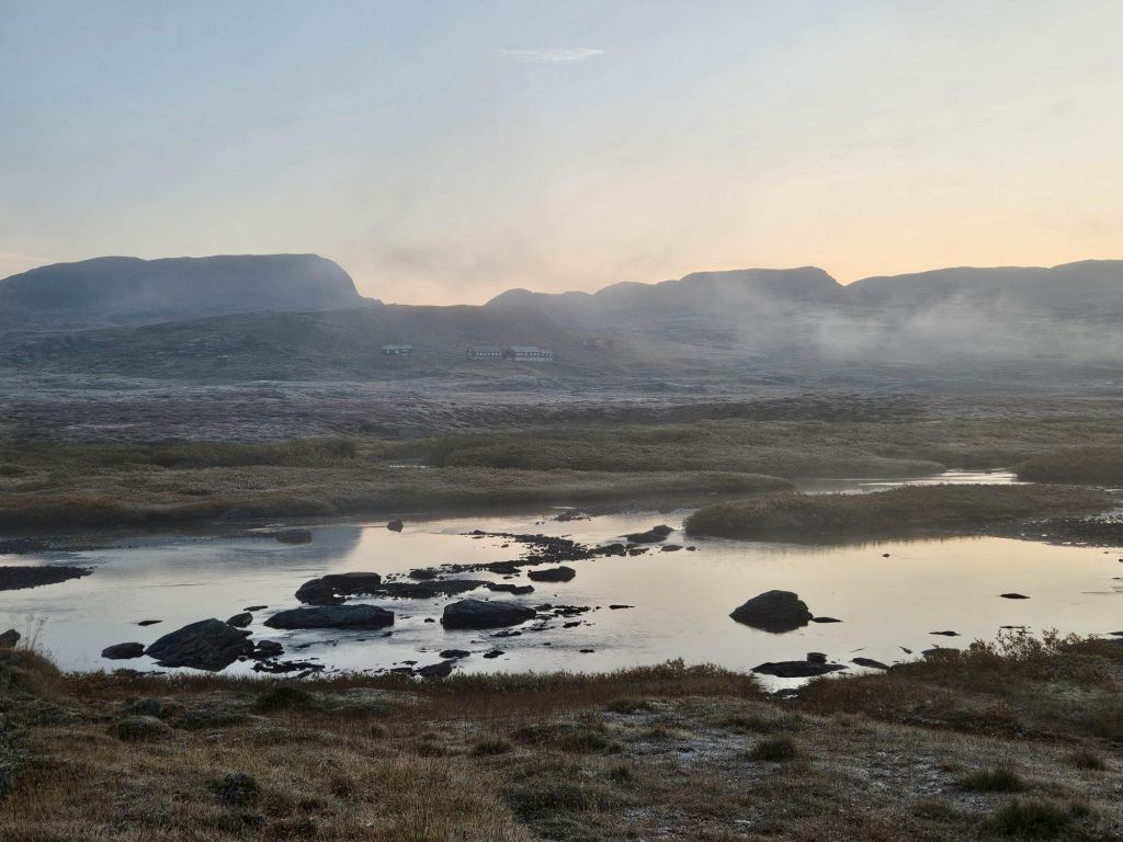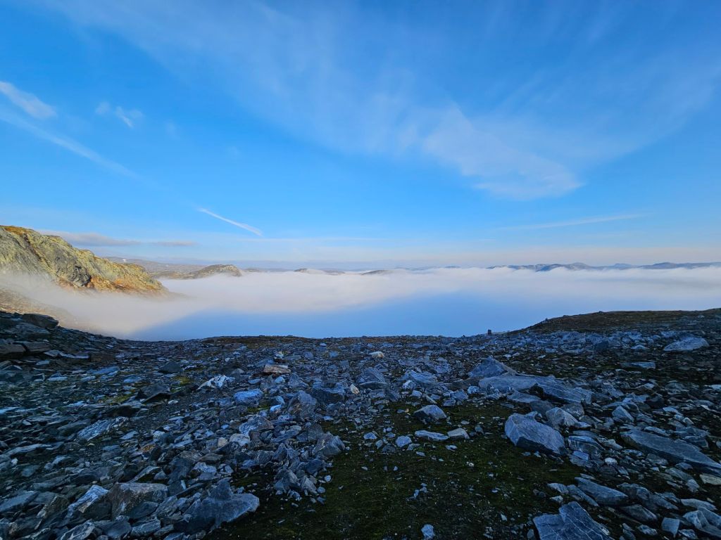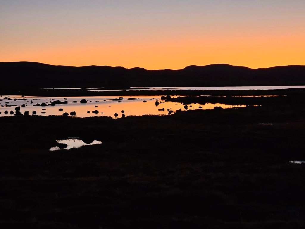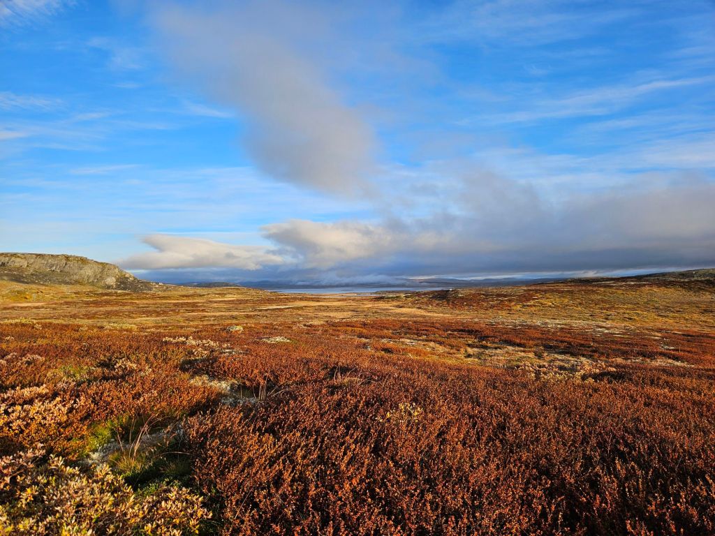 In Haukeliseter ist für mich nun mal etwas Ruhezeit angesagt, während der ich prüfen kann, wie und ob es überhaupt weitergeht. Die Wetterprognosen deuten klar auf einen Wintereinbruch mit Schnee und Minustemperaturen hin. Die Vesthei liegt durchschnittlich auf 1000-1200 MüM, ist sehr Westwindwetter exponiert und auch anfällig auf Herbststürme. 2022 habe ich hier Anfangs Oktober in der Ryfilkshejane, in der DNT Hütte Bossbu, einen Orkan ausstehen müssen. Die Gewalt war echt beeindruckend! Orkanartige Stürme sind zwar keine angesagt, doch Schnee und Eis.