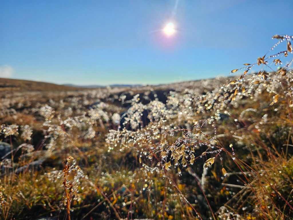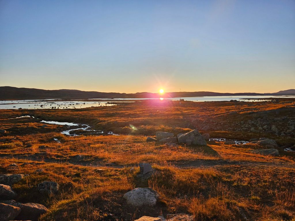 Immer wieder hört man den typischen Doppelknall der Schrotflinte. Es ist Rypenjagd (Schneehühner) und die Hardangervidda wird von den Jäger/innen bevölkert. Es lohnt sich sehr, nicht gerade irgendwo in einem Gebüsch ein Nickerchen zu machen, wenn man den Hosensatz nicht voller Schrot haben möchte!