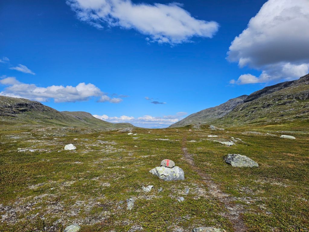 Die ersten sechs Km schlängelt sich ein markierter Wanderweg vom Susendalen hoch. Für mich ist dieser Weg unbekannt, da ich 2015 weiter westlich einem ATV Track der Samis folgte.