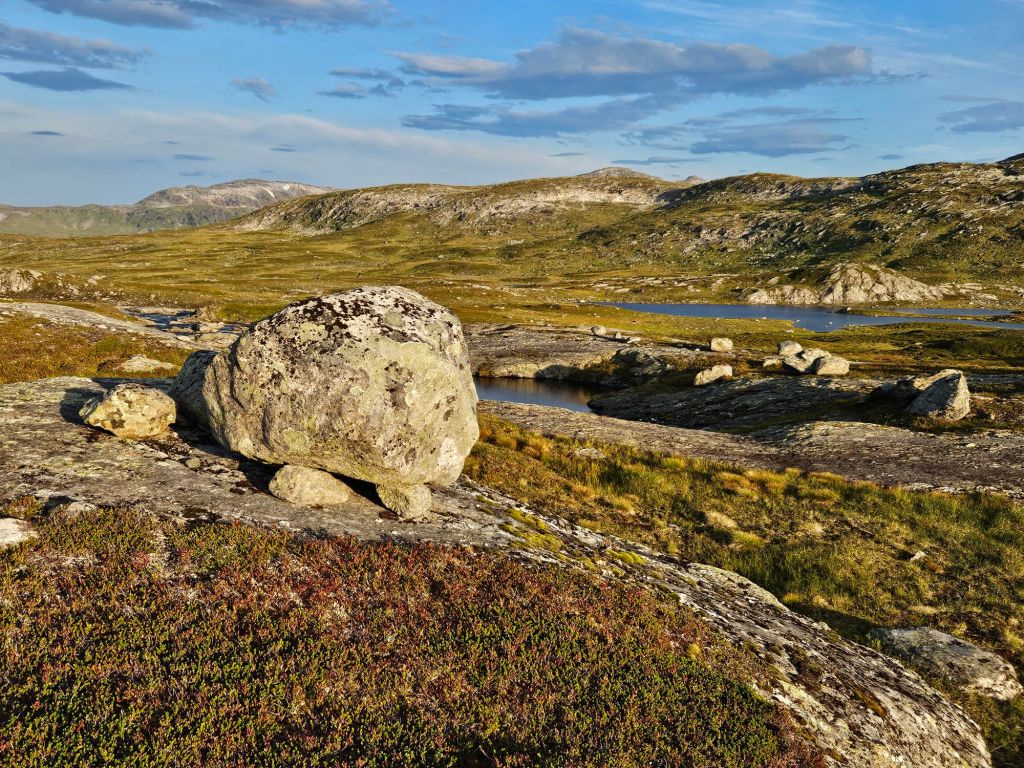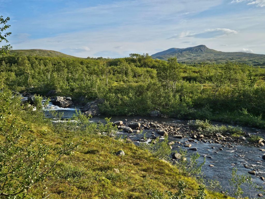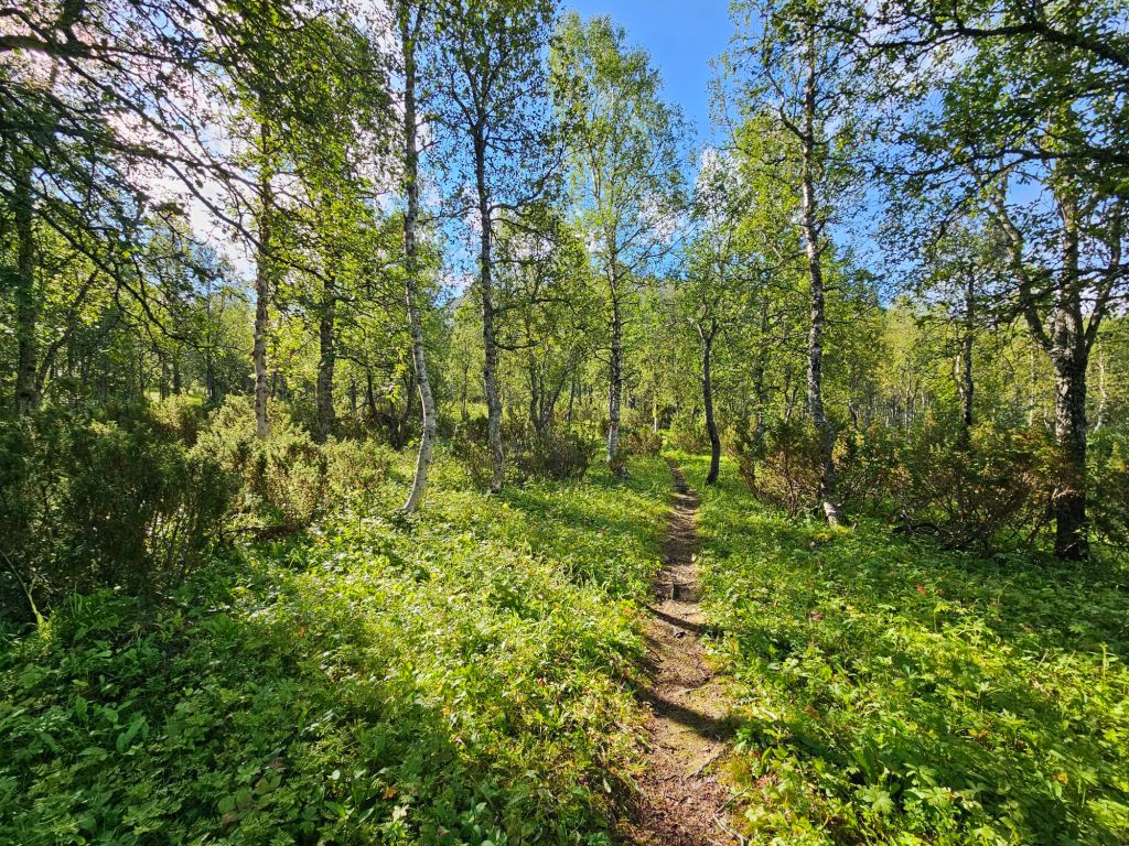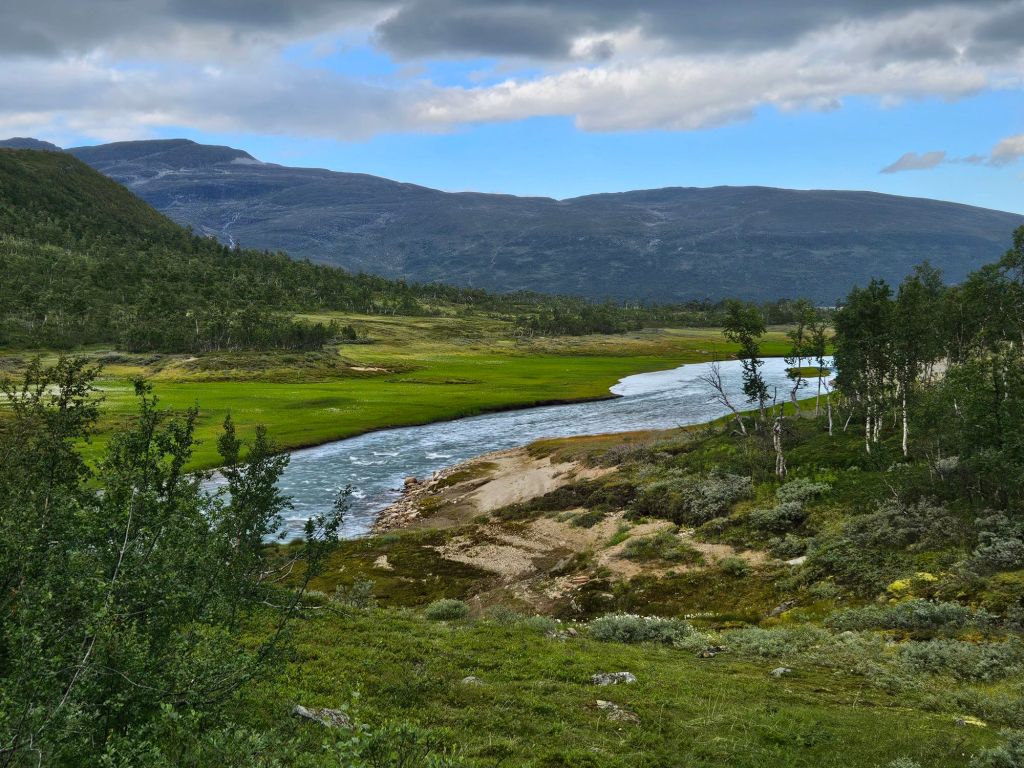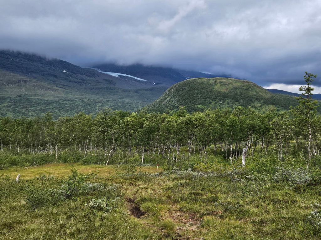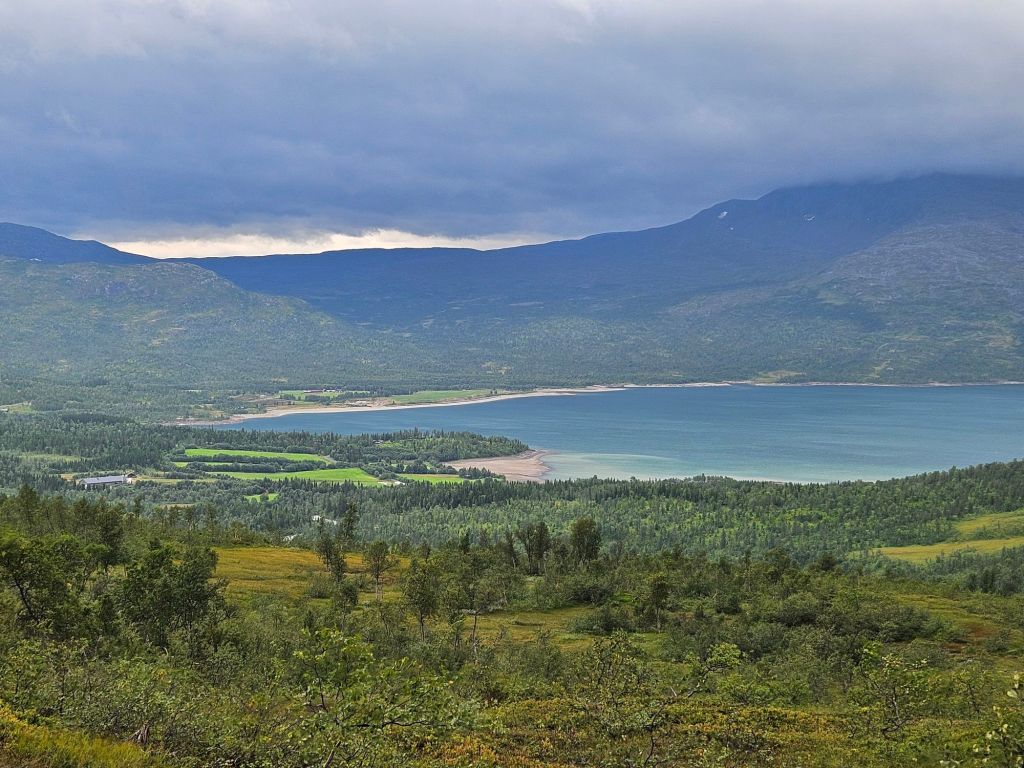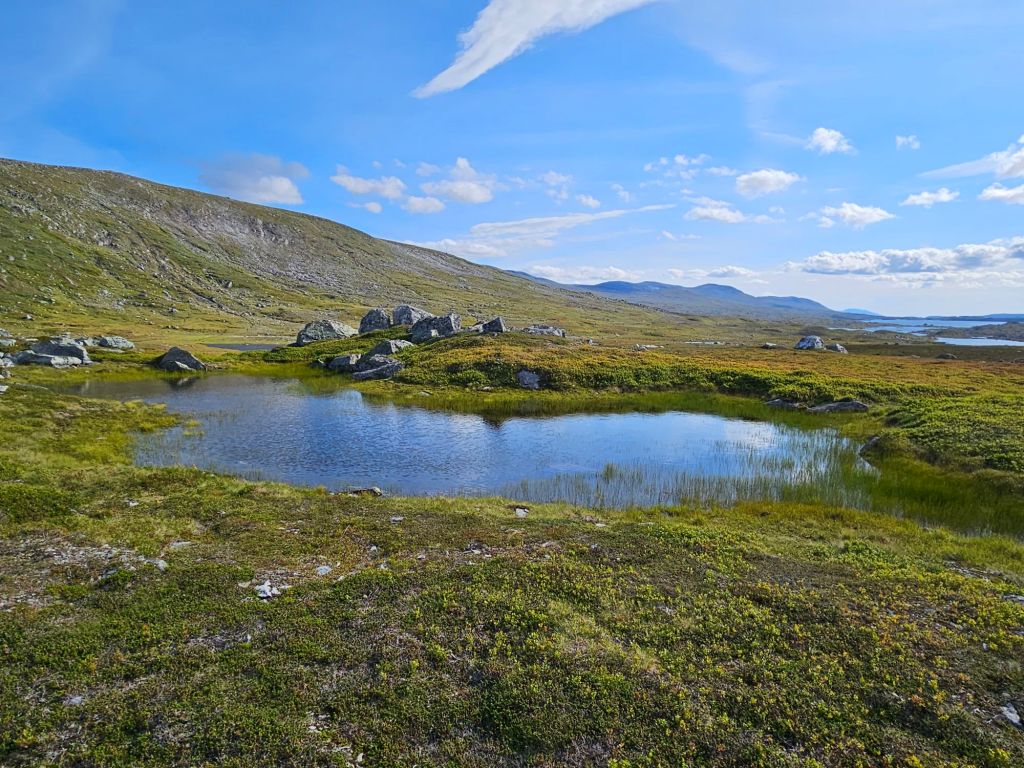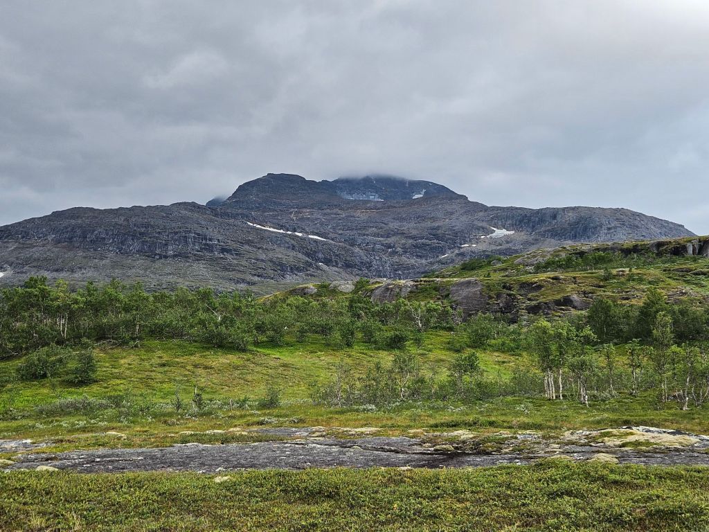 Am Himmel machen sich langsam Vorboten des Regens breit und so mache ich mich auf Richtung Tverelvnes gård. Die Landschaft ist unheimlich schön und es ist mal wieder ein Vollgenuss oberhalb der Wald- und Sumpfgrenze zu wandern. Nichts gegen Wald und Botanik, aber die Hochfjells sind halt definitiv entspannter zu durchlaufen.