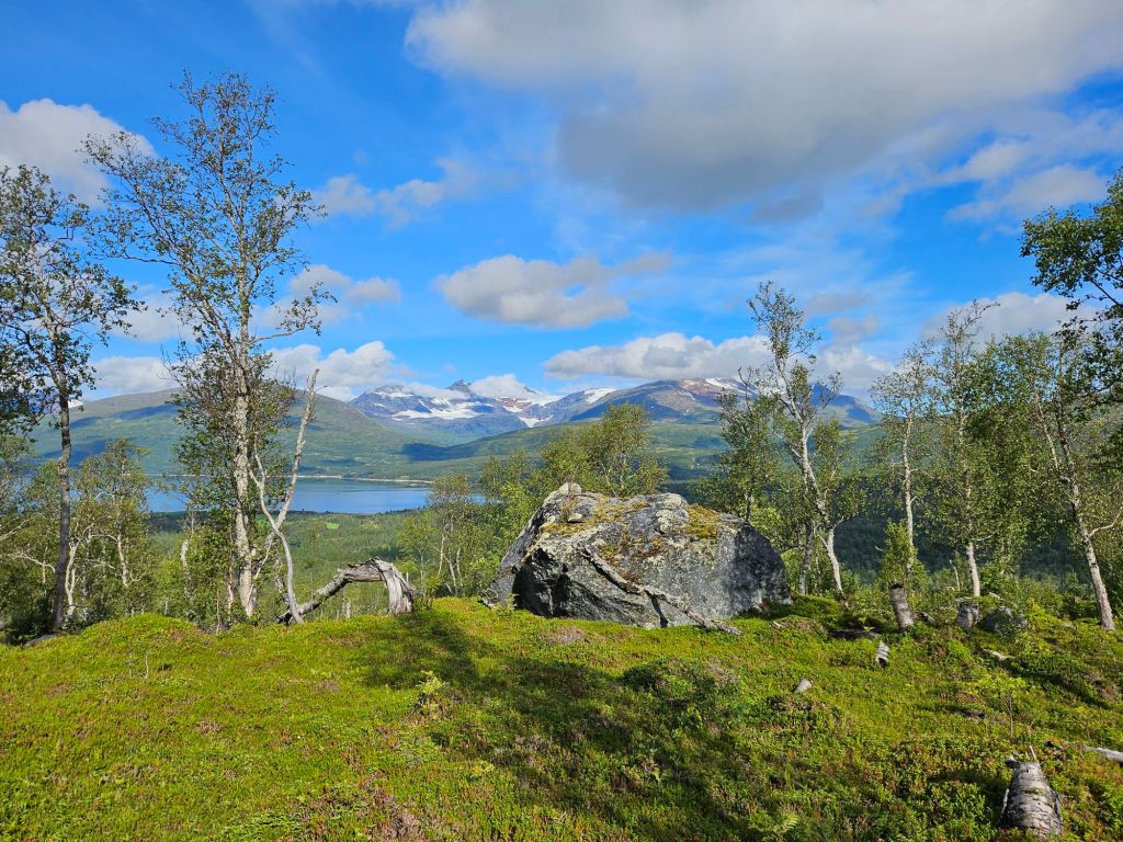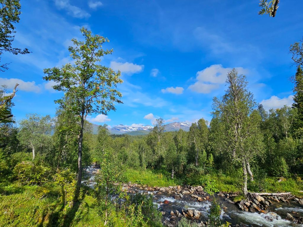 Bei einem Felsen, vis a vis der Fjellstue, blicke ich nochmals hinüber, bevor sie hier im Grün des Waldes verschwindet. An diesem Ort habe ich 2013 bittere Tränen vergossen, weil mir klar wurde…es geht nicht mehr. An diesem Ort habe ich 2015 vor Freude geschrien, endlich wieder da zu sein und die Tour jetzt endlich fertigzubringen. An diesem Ort verdrücke ich 2024 gerade ein paar Tränen aus Dankbarkeit, Demut und auch ein bisschen Stolz, es wieder geschafft zu haben. Wahrscheinlich werde ich diesen Ort, diese Leute nie mehr wiedersehen.