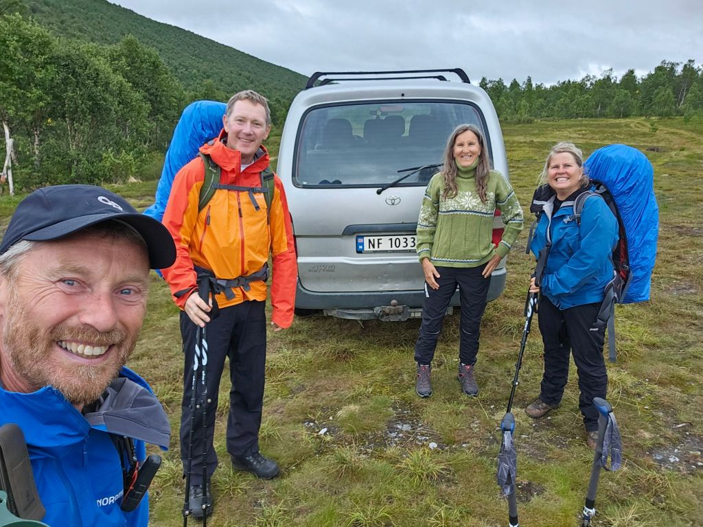 Heute ist Håkon dran und ich und ein Paar aus Norwegen welches die Nordlandsruta in Etappen geht und gestern Abend noch in der Stekvaselv gård ankam, steigen ein. Håkon hat die beiden gestern Abend spät noch bei der nächsten Bushaltestelle abgeholt, was 100 Kilometer Fahrt bedeutet!