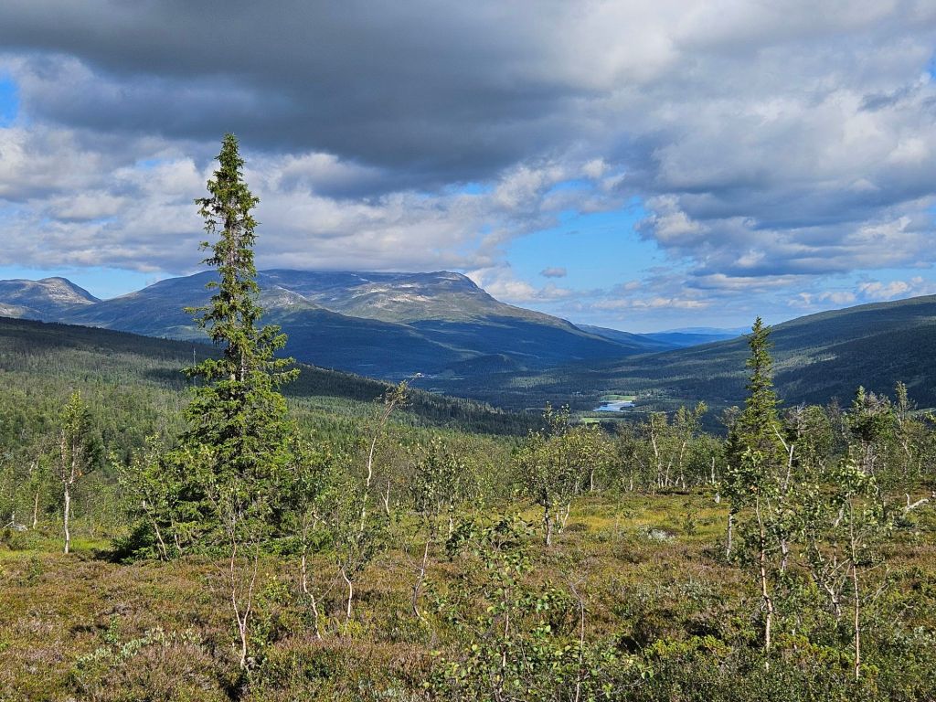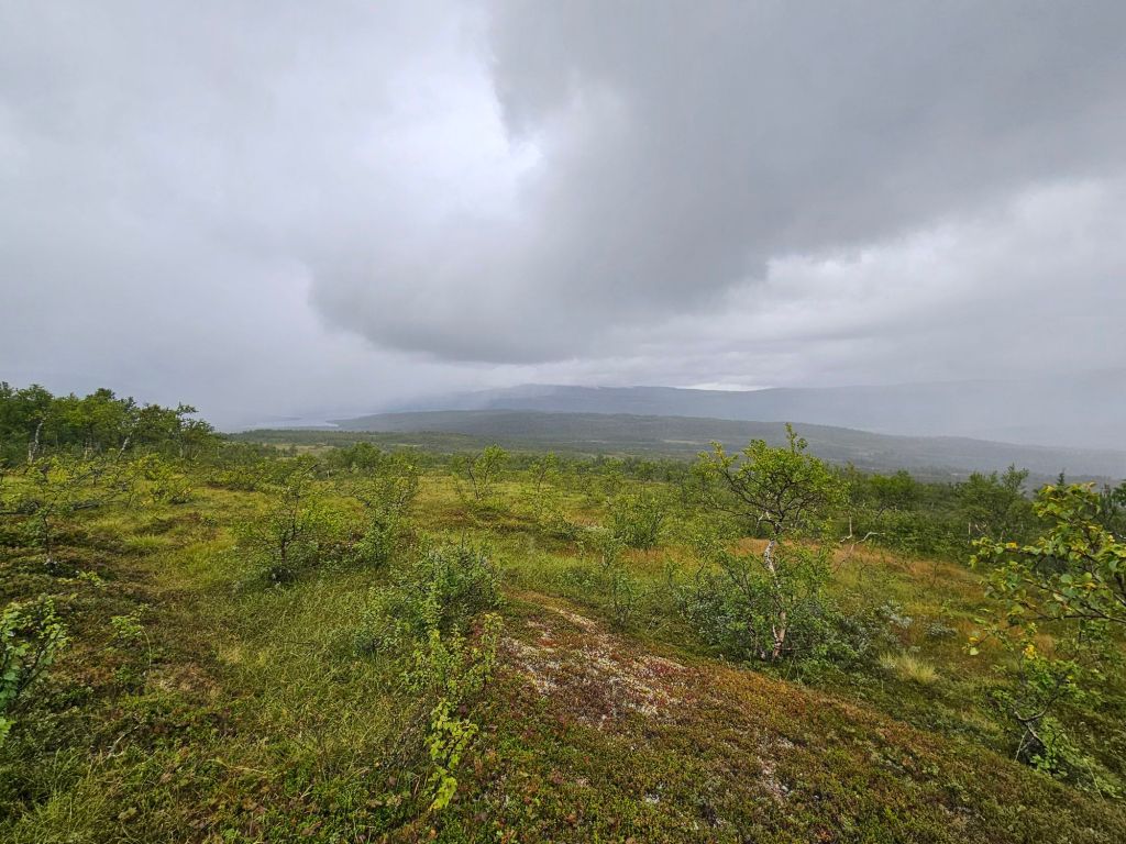 Gerade als der Abstieg zur Herberge beginnt und ich wieder im Wald verschwinde, beginnt es zu stürmen und heftiger Regen prasselt auf mich nieder. Zum Glück dauert es für mich nur noch eine Viertelstunde bevor ich im Trockenen bin. Anders und Liv sind noch oben im Fjell und bekommen die volle Breitseite kassiert.