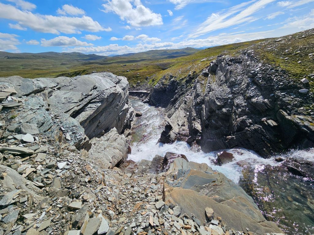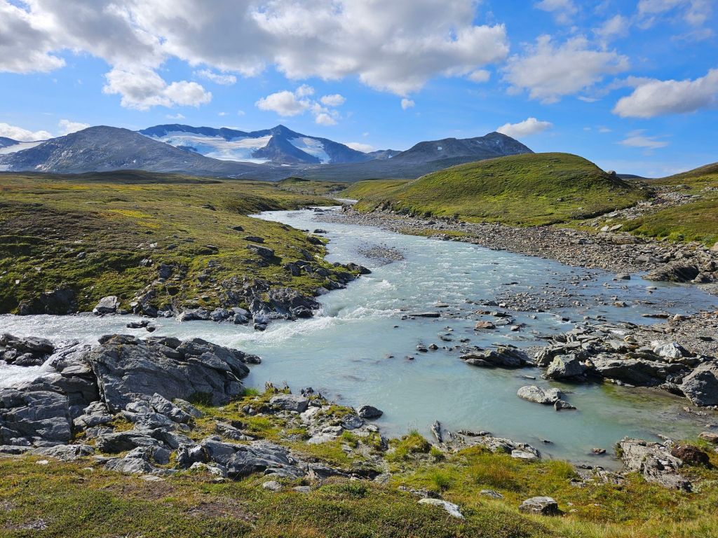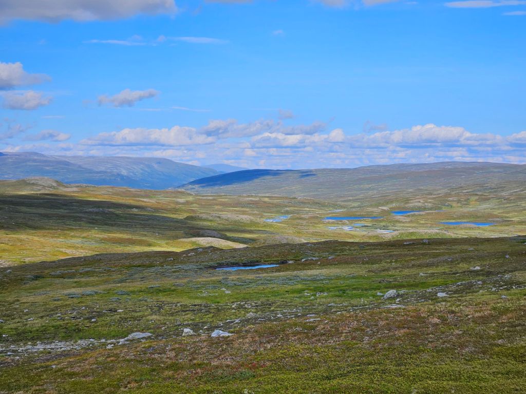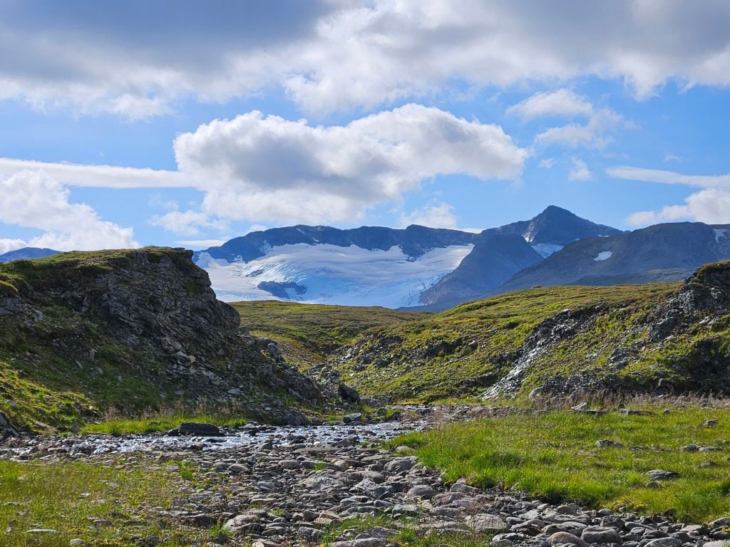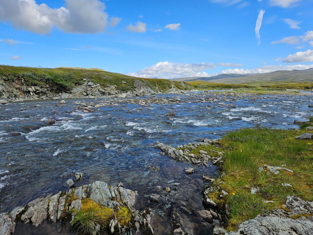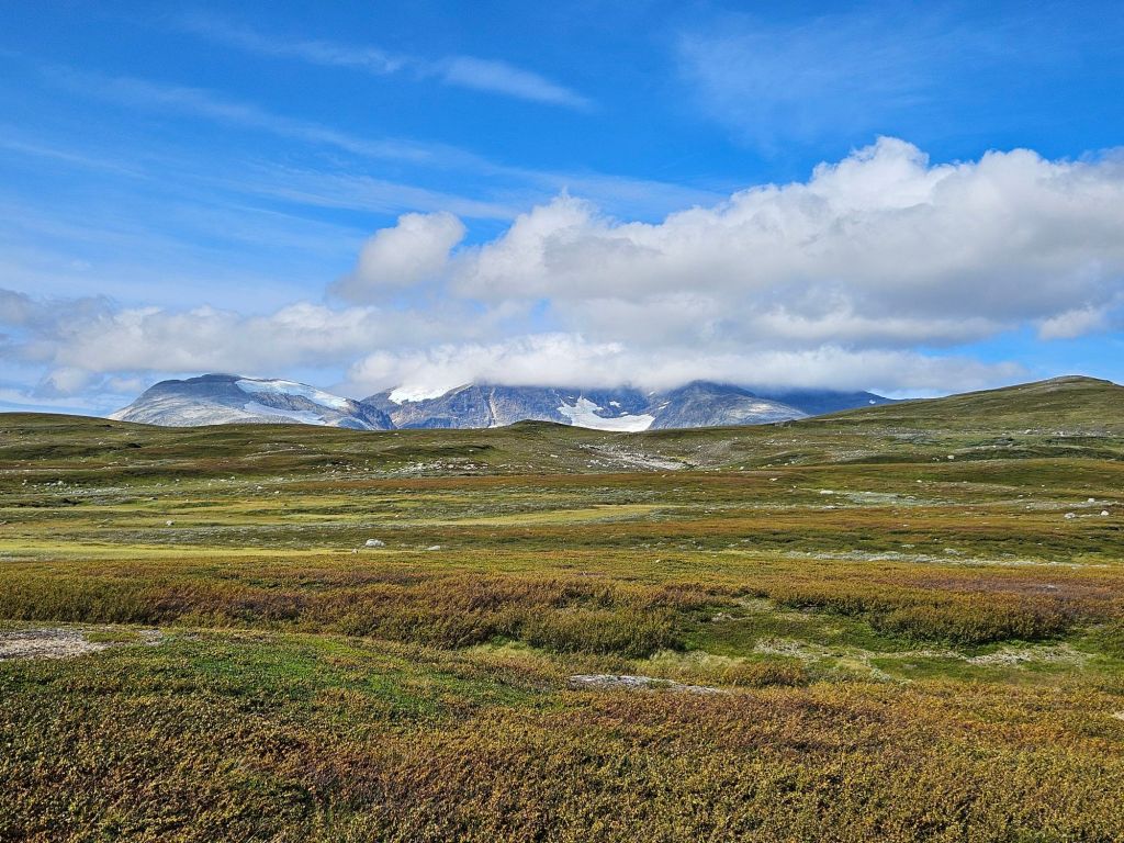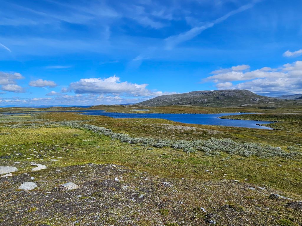 Ich bin tief beeindruckt von der grandiosen Landschaft und es tut mir gerade etwas in der Seele weh, wenn ich mich an 2023 zurückerinnere, als Anja und Mel hier bei strömendem Regen und Sturmwinden über das ganze Fjell kämpfen mussten.