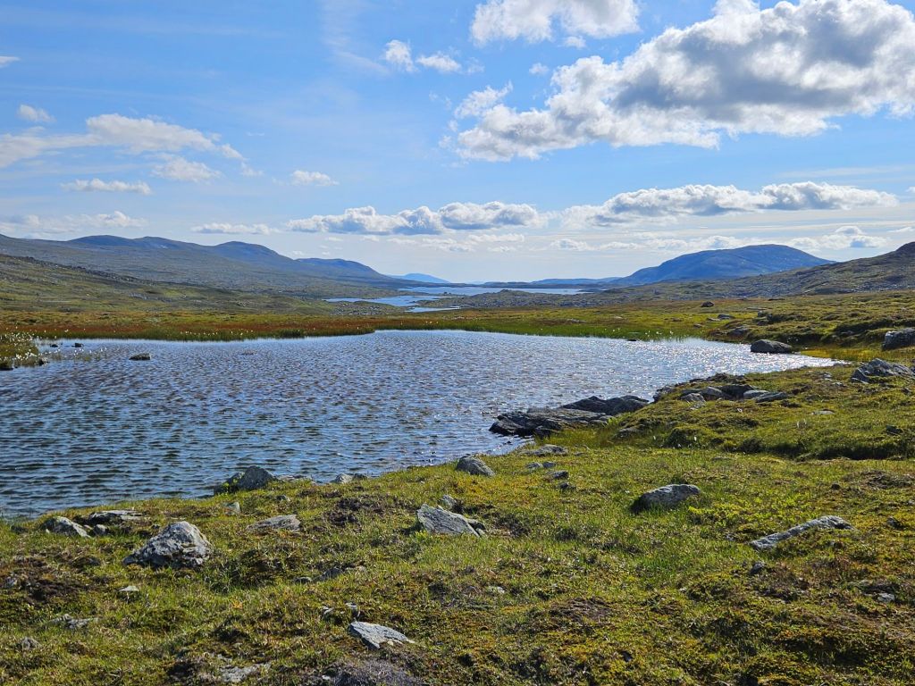 Bis zum Gaukarsee ist es noch einfach zu laufen, danach ist Sumpf angesagt. Ich bin 2015 auf der Westseite des Virmaelva hochgelaufen und hatte keine schlechten Erfahrungen damit gemacht. Auf der Ostseite gibt es etwas wie einen Pfad, aber nicht weniger Sumpf.